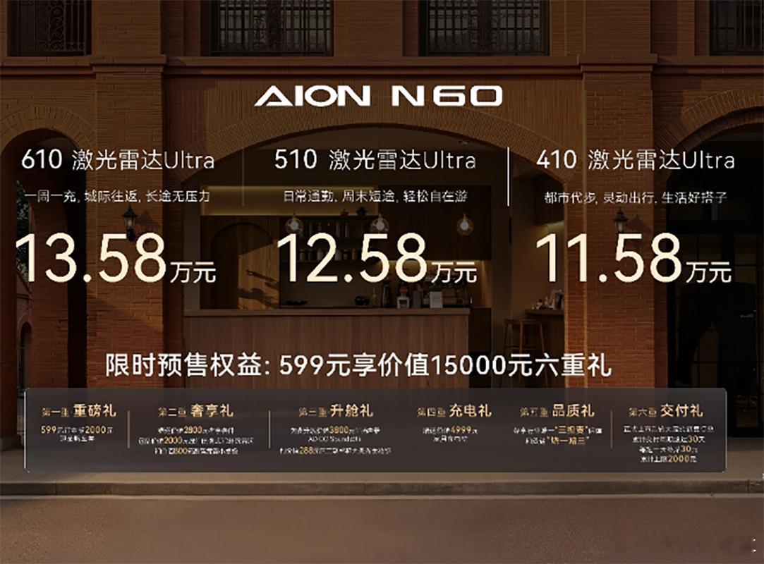 4月16日,长沙梅溪湖艺术博物院,埃安以一场新能源汽车时尚大秀,正式发布全新品牌理念“Easy Life”, 并宣布全新重磅车型——智美都市SUV埃安N60,面向年轻人,没有复杂的选配清单与套路,而是以 “全系标配激光雷达辅助驾驶、全系标配副驾零重力座椅、全系标配豪车级五连杆、全系标配非晶碳纤维电机”等超20项全系标配的诚意,正式开启预售,预售价11.58万元起,并同步推出了价值15000元的预售权益,重新定义了15万内纯电SUV价值标准。