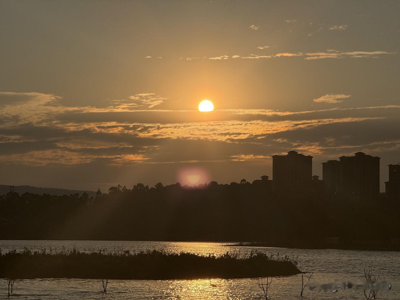 落日余晖,晚饭后到湖边走走,看看落日,也是一种享受 !落日景致图 余晖治愈风景