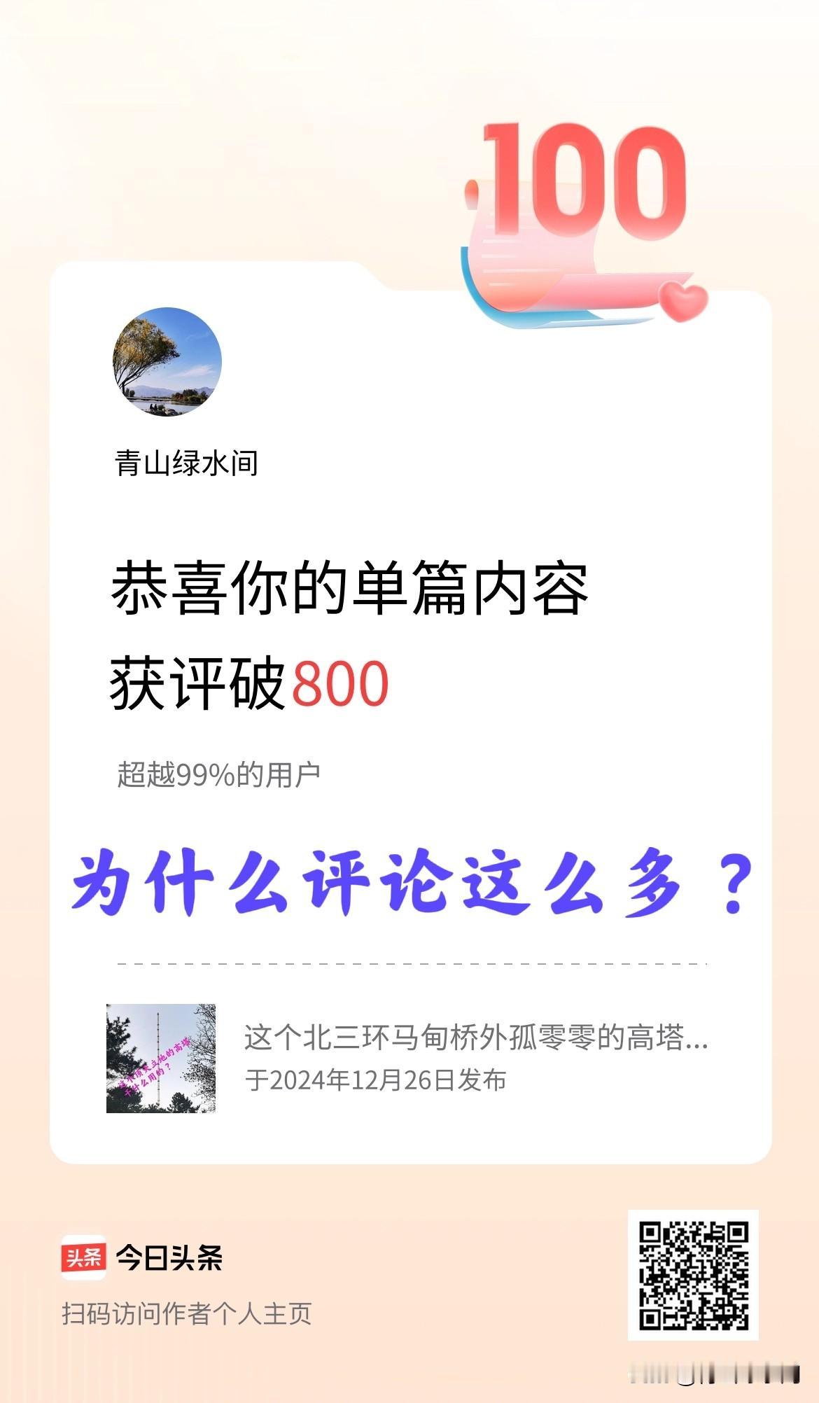 一年前写过一篇这铁塔的文章,前两天还收获了“单篇内容获评破800”的奖状,为什么获得这么多的点评 ?这应该我收获点评最多的文章了 !不经意间的的一个疑问没想到反响这么大,原来多次路过北三环马甸桥附近,远远就能看到一根高耸入云的铁塔,原来一直都以为是做地质勘探用的,其实还真不是这样的……