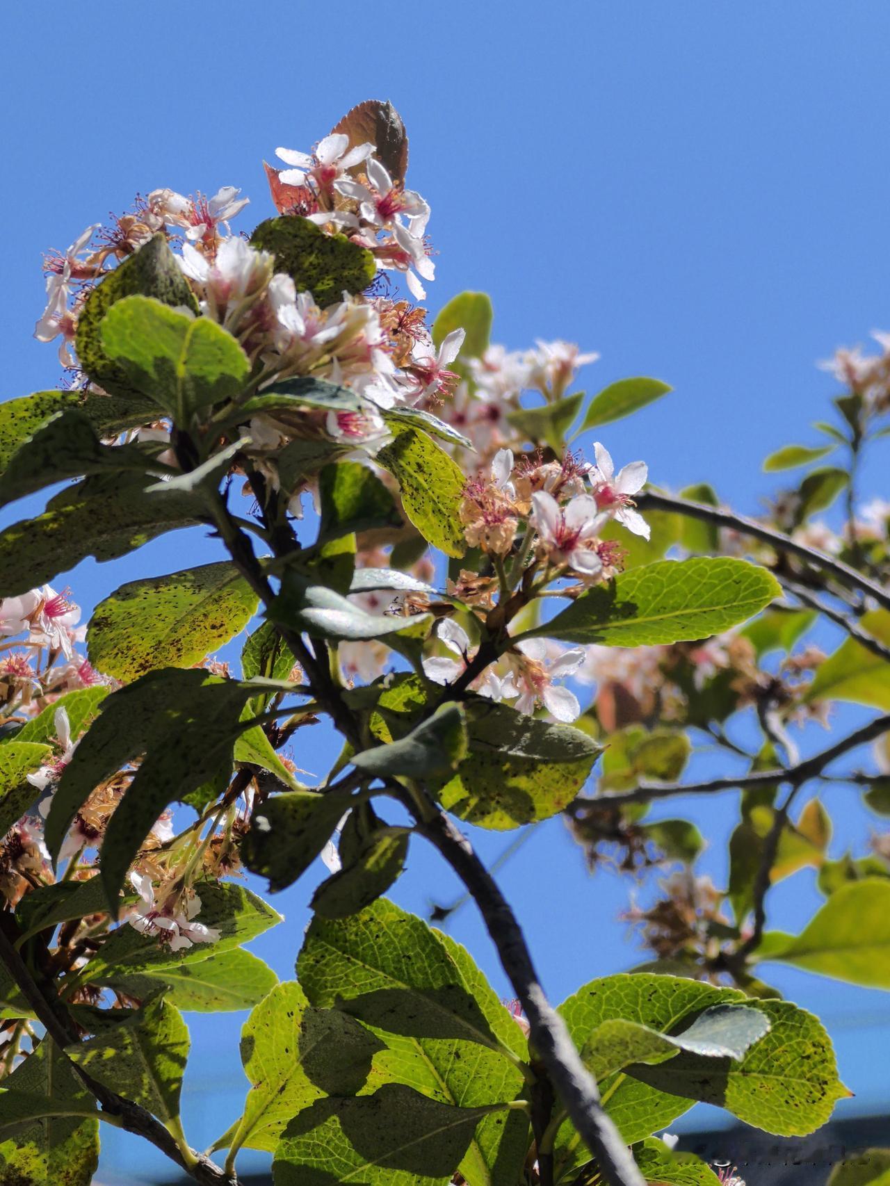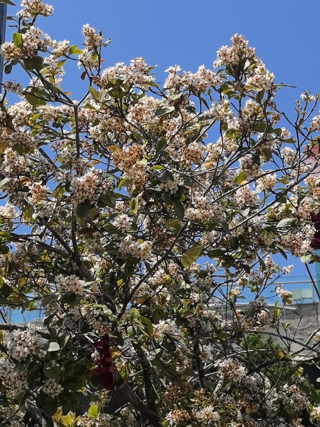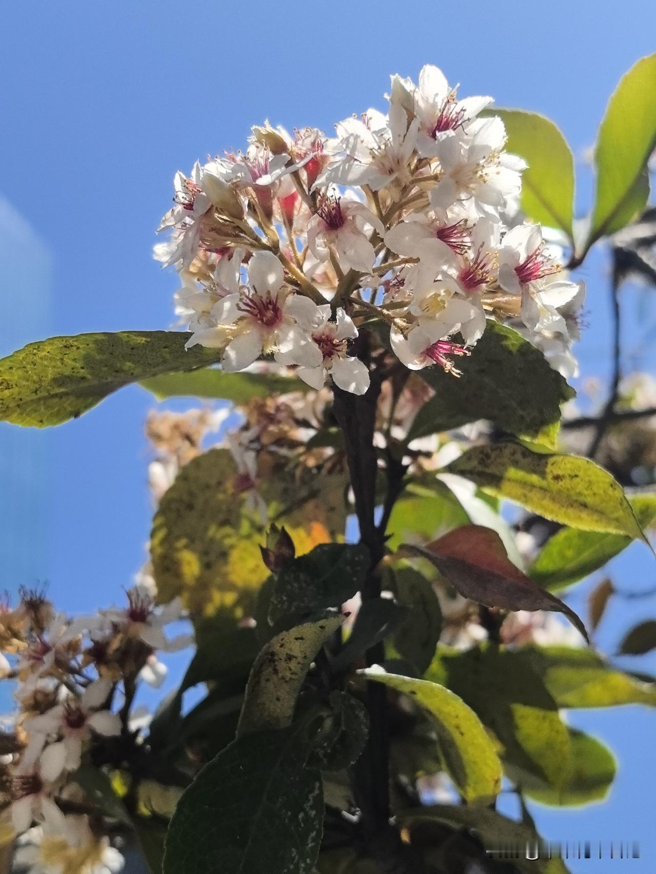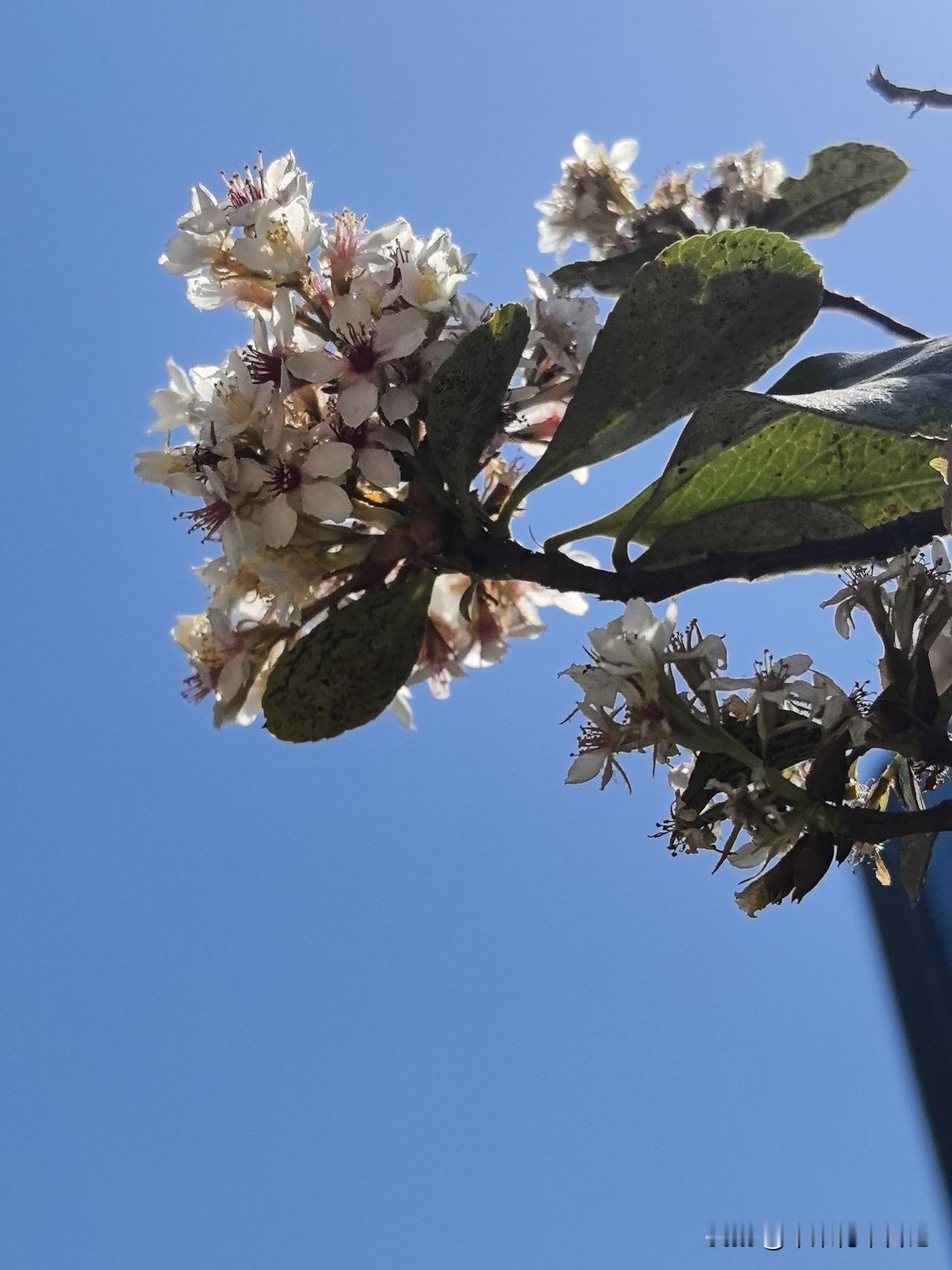 石斑木花 绿叶丛中白色妍 一树繁花映晴空 花团锦簇香气溢 引人欣赏入画中 晒晒