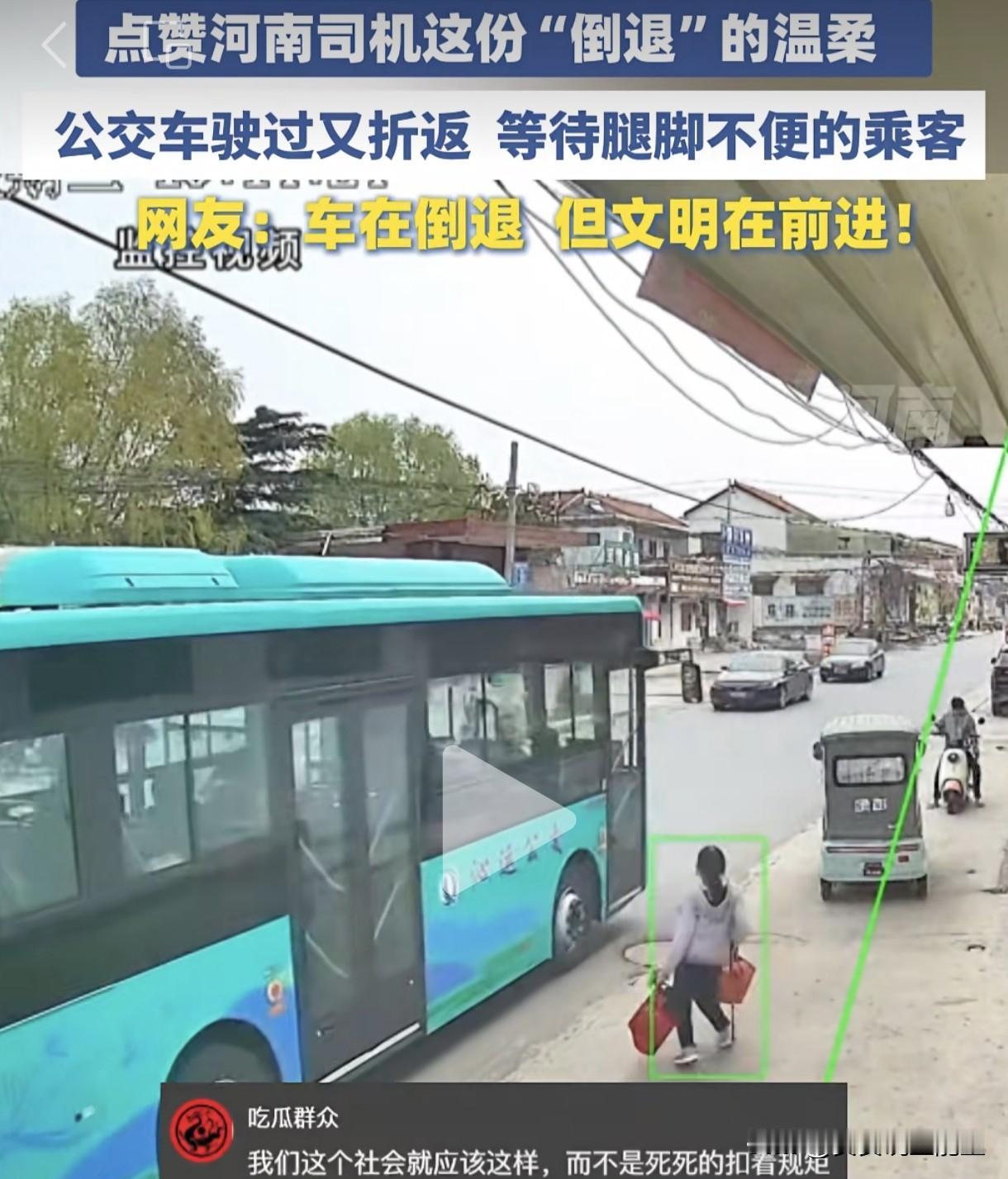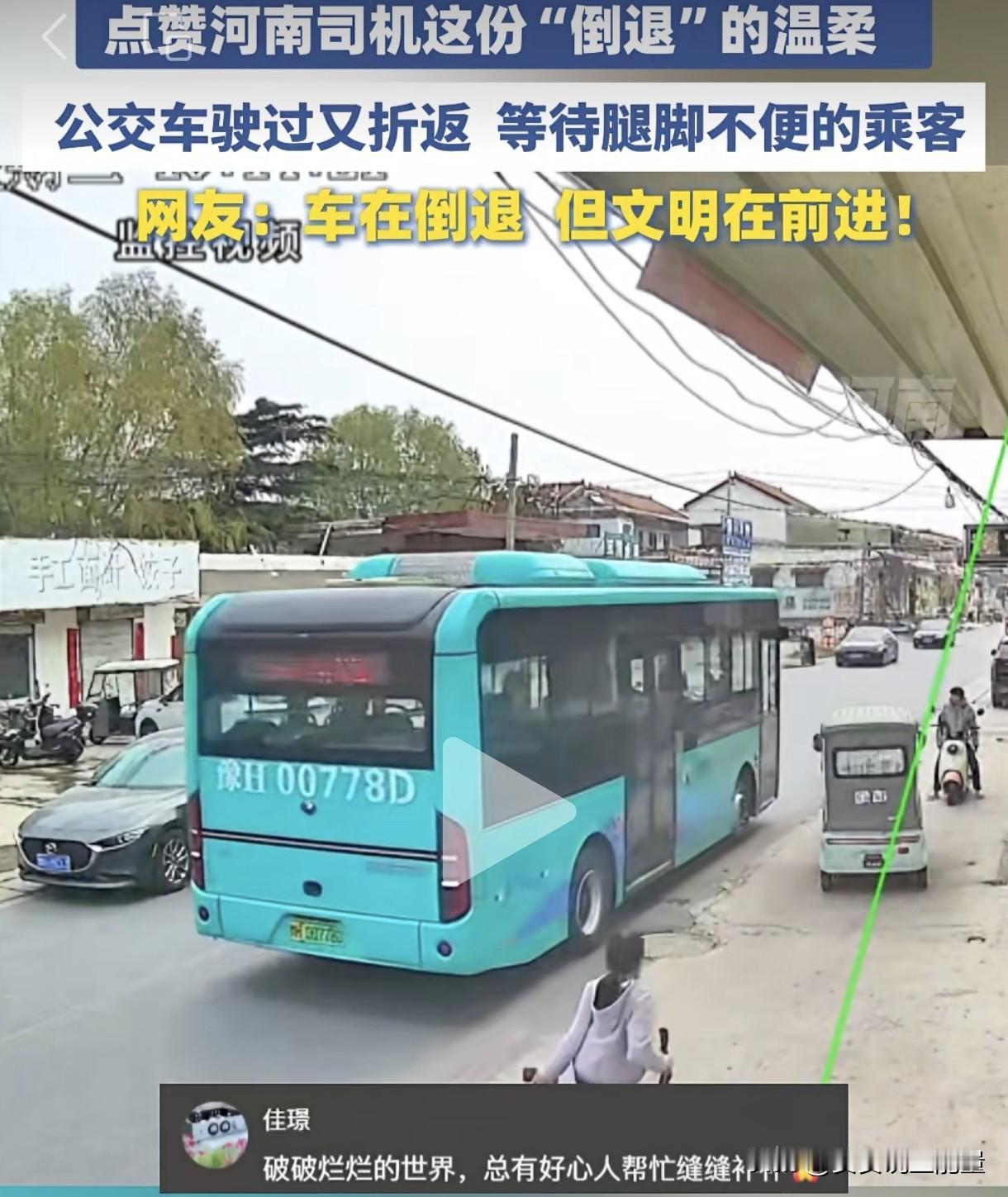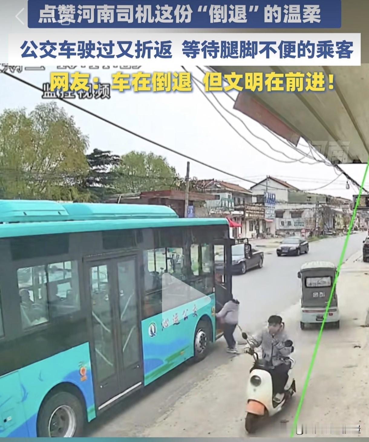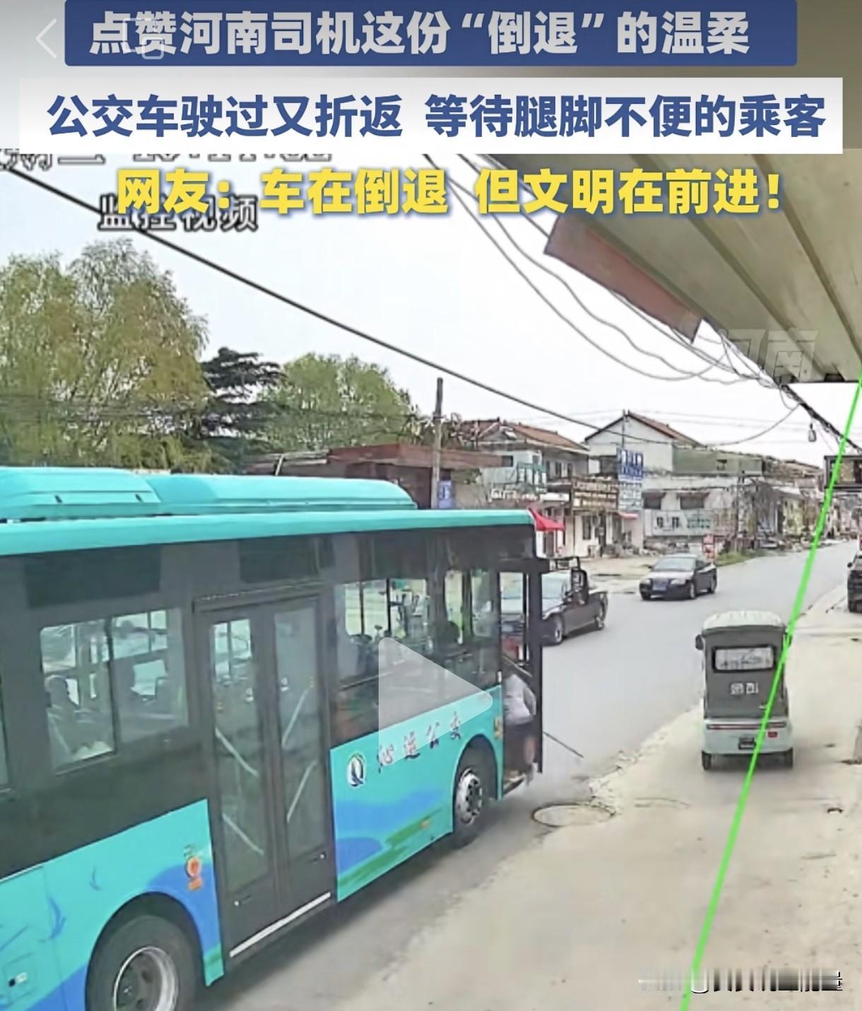 开出站台的公交车还能倒车回来,你信吗?河南沁阳一公交车司机正常开车出站台,从后视镜发现一位腿脚不便的乘客没有及时上车,正拿起行李想要追赶。