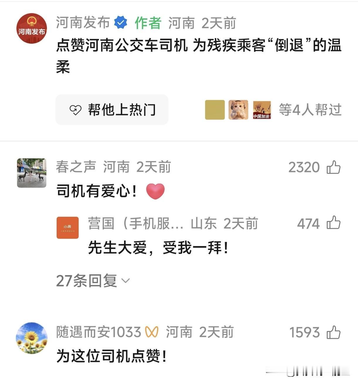 小事见大爱!对于司机来说,这就是一件不足挂齿的小事,顺手就做了,也有可能违反公司操作程序。但是对于这位腿脚不便的乘客来说,这份方便足以让她记住一辈子了。对于广大网友来说,他们看到了爱。