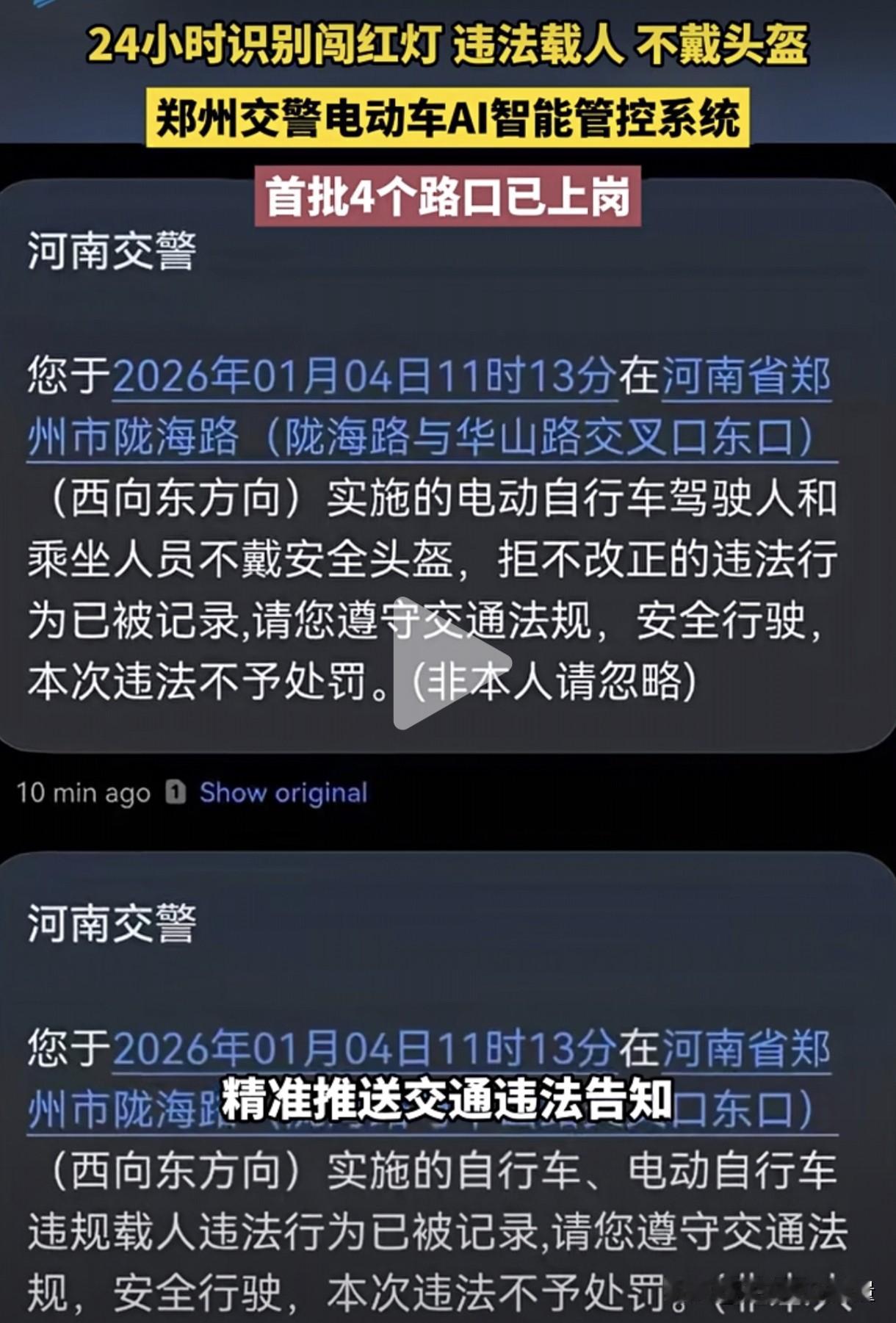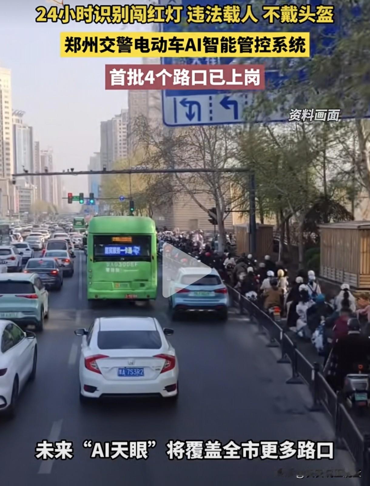 厉害了,河南郑州!媒体报道郑州交警电动车AI智能管控系统正式在四个路口上线了,可