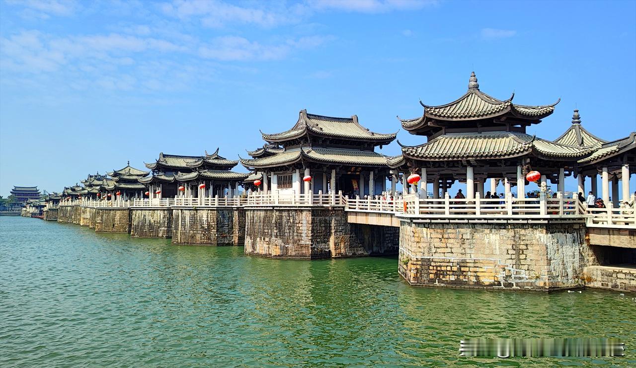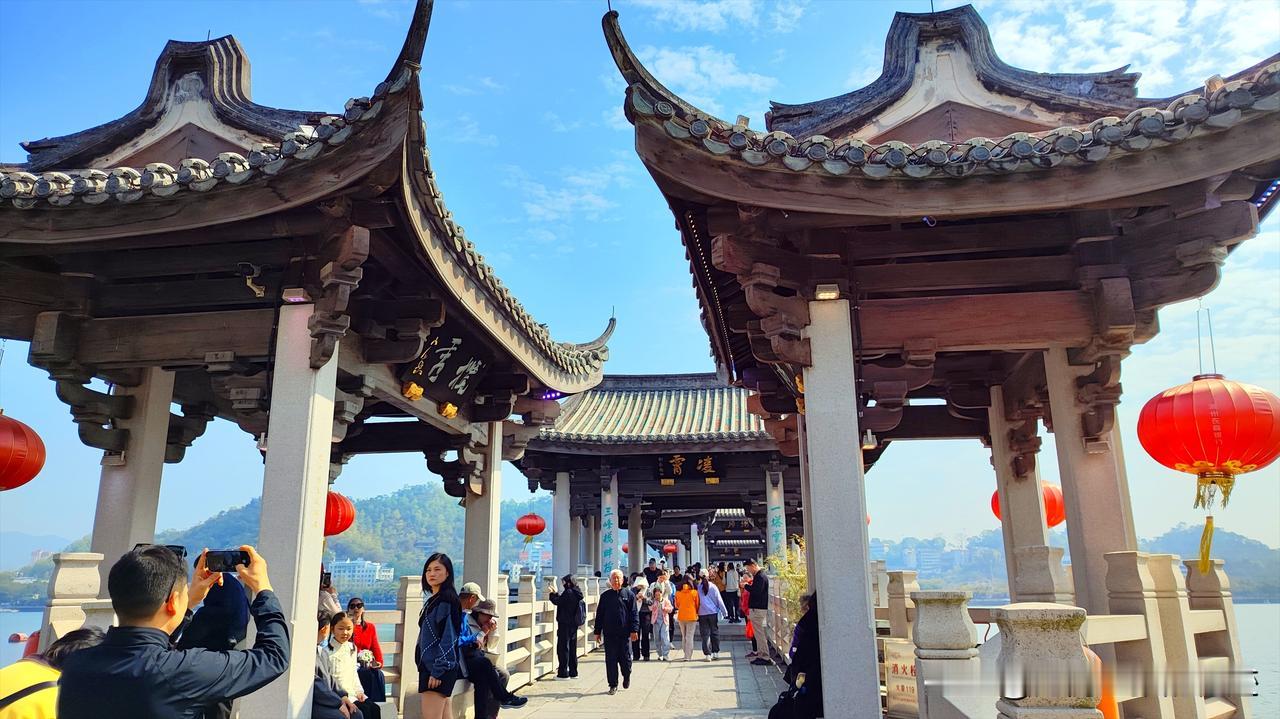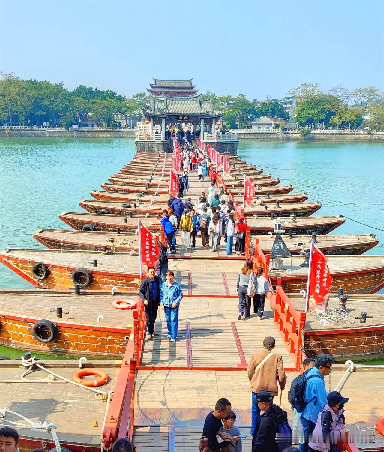 潮州广济桥,中国四大古桥之一。它始建于南宋乾道七年,由86只梭船用铁链连接,叫“康济桥”。后来历经多任官员修建,明宣德十年改名“广济桥”,取“广济百粤之民”之意。