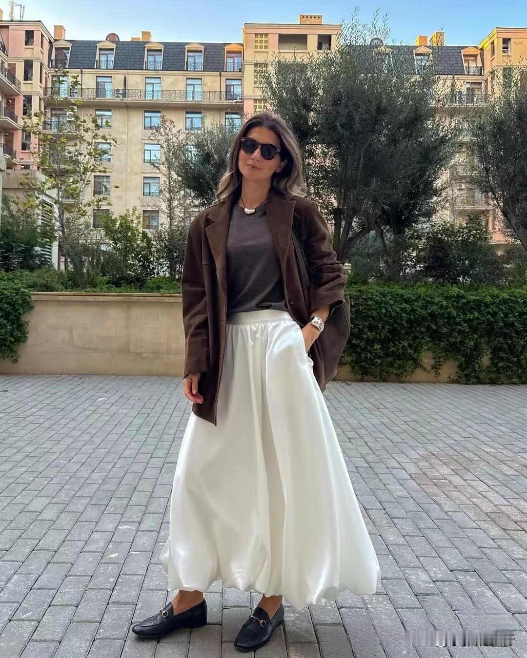 回头率超高的时髦老钱风!这组大地色系穿搭太绝了,浅咖针织Polo衫搭配藏青阔腿