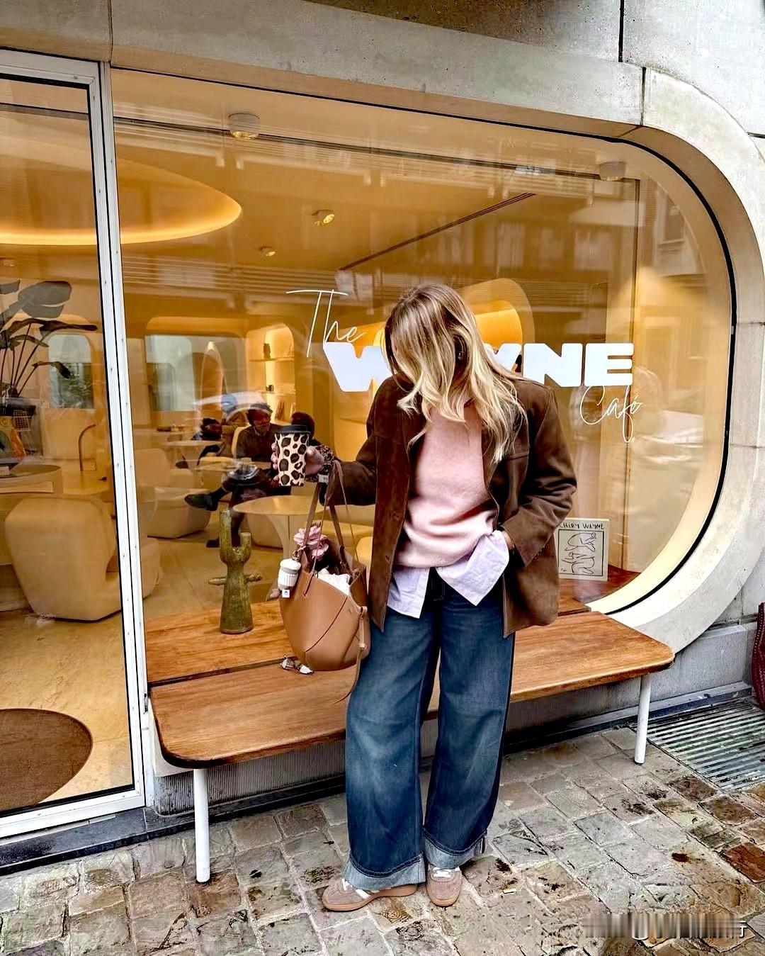 牛仔夹克+阔腿裤,又酷又飒,宋佳的松弛感穿搭真的绝了!叠穿针织开衫,细节感