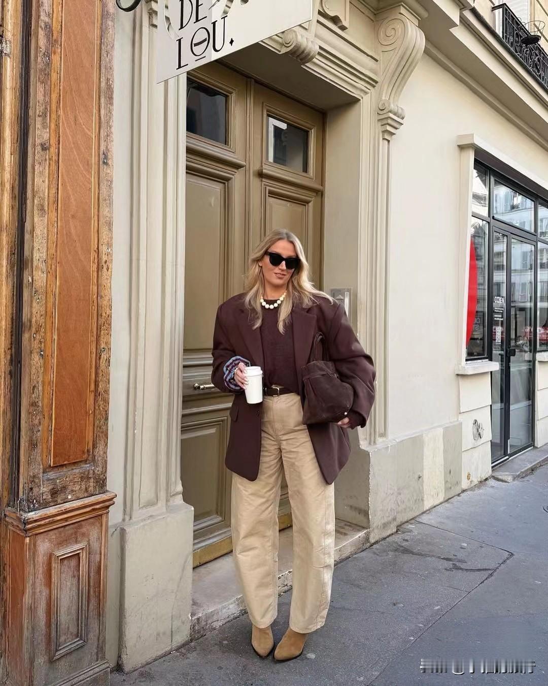 咖色这样穿很高级!自带松弛感的大地色系,是永不过时的穿搭王牌。深咖针织配浅麻短