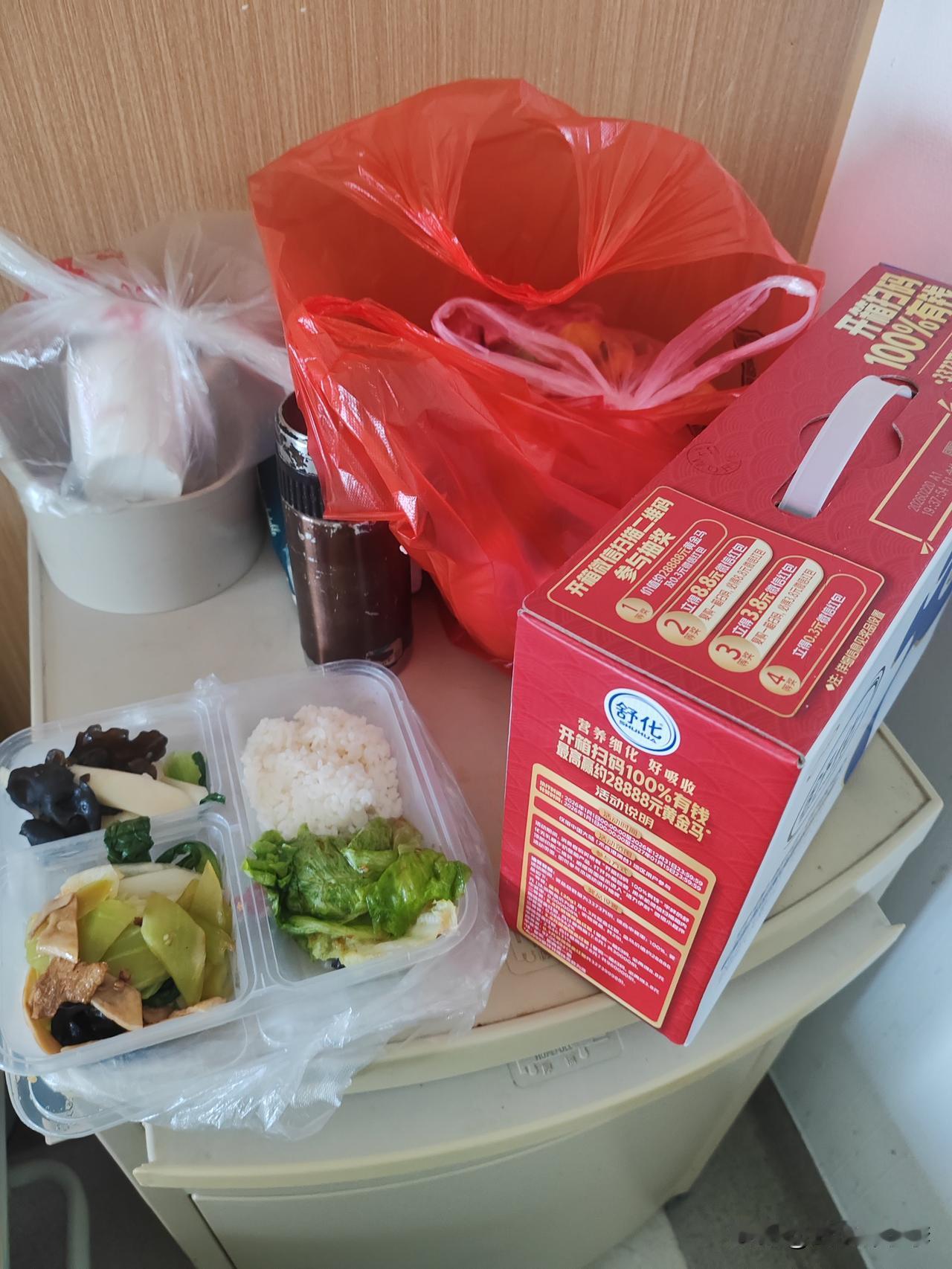 今天上午正在打针同事来了陪我聊天,打完针休息一会下去打饭,走到电梯口刚刚好电梯口打开店长提了排骨牛奶和水果来看我!我又不是生病住院搞的我都不好意思了,只能等出院请她们吃东西吧!