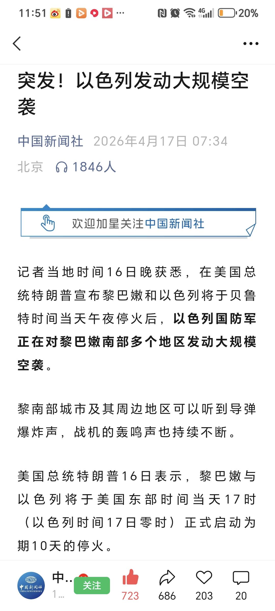 前脚特朗普刚对着镜头宣布,黎以将启动10天临时停火;后脚以色列的战机就升空了,对着黎巴嫩南部狂轰滥炸,导弹爆炸声、战机轰鸣声在黎南城市响个不停。
