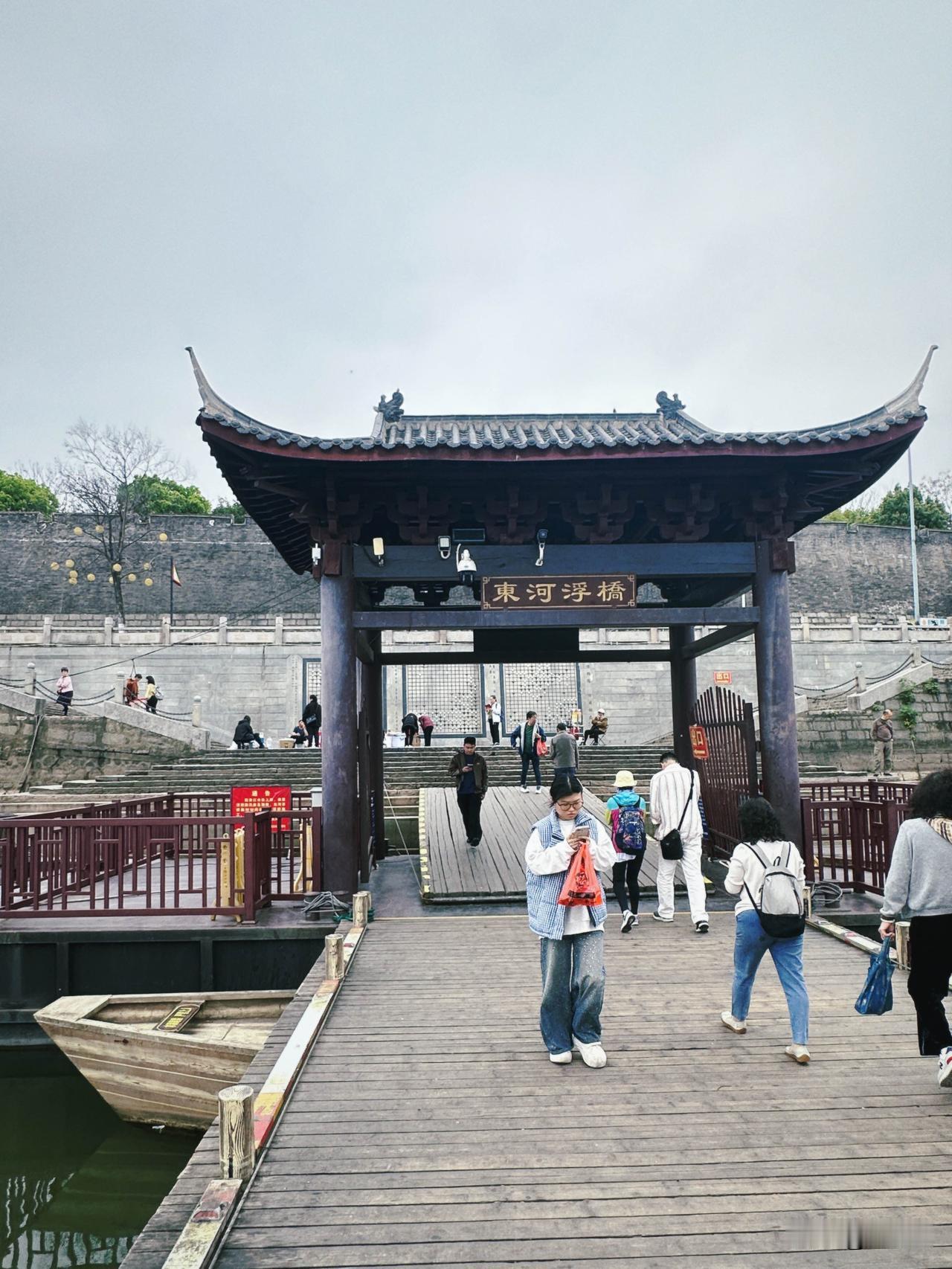 就在建春门外,是唯一原貌保存、至今仍在使用的宋代古浮桥,全长约400米,是由33组、116艘木船连接而成的,被誉为“活着的宋城文物”,桥上有传统鱼市,河边还有人在垂钓、洗衣,老城的生活气息扑面而来。