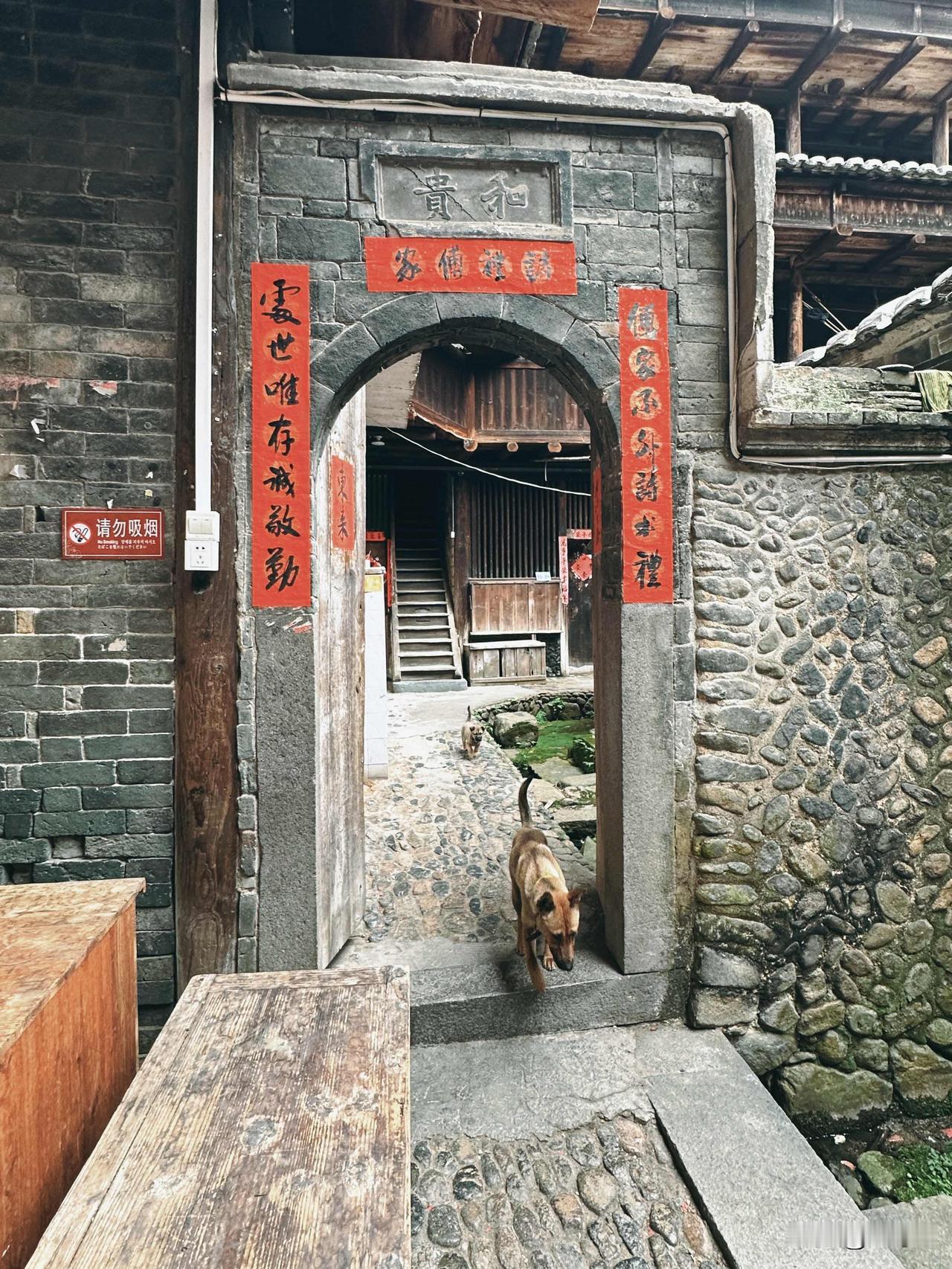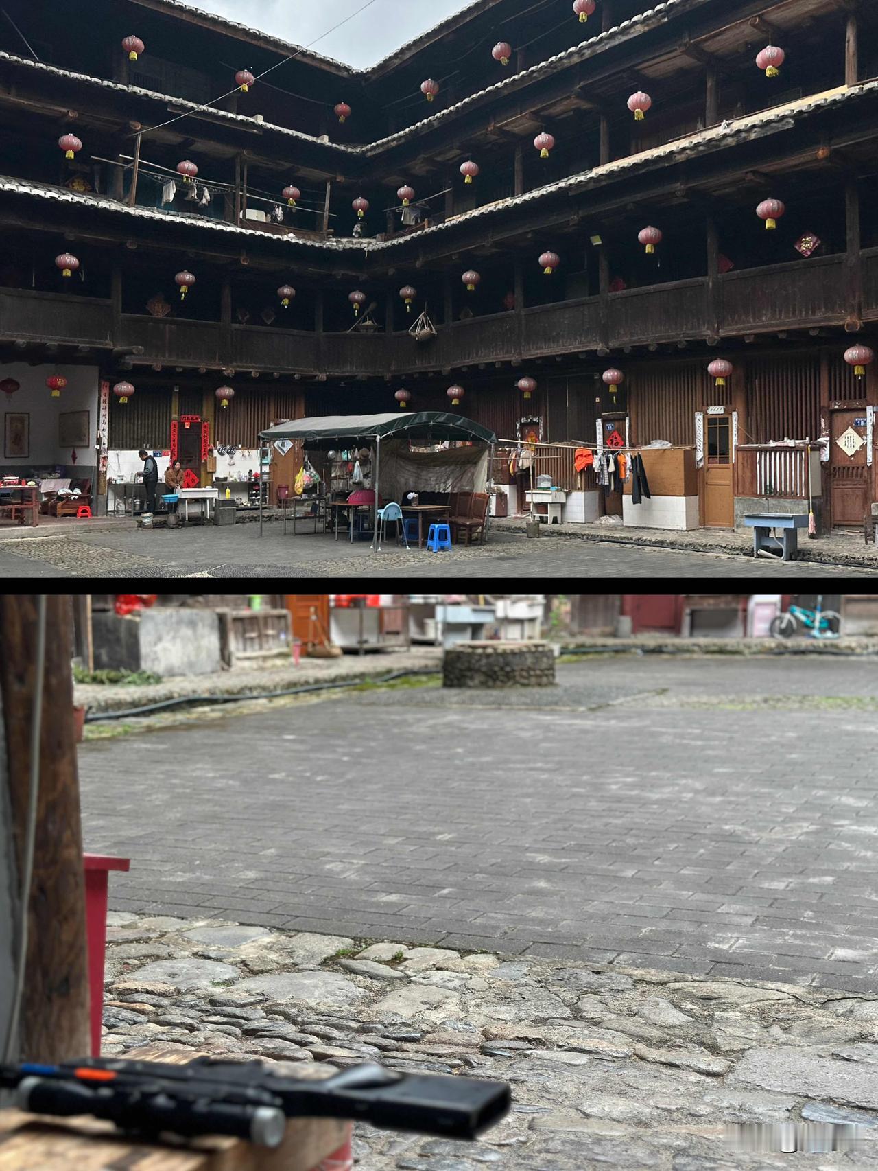 ✅ 环极楼:其实是在南中村,环极楼是电影《大鱼海棠》中湫躺在屋顶上的取景地之一,听说非常有感觉。我看网友说“可登楼,几乎没人”,没想到我们去的时候,因为村里一个老人家去世,全村人几乎都在里面吃席,询问可以进去拍照以后,我们都小心翼翼地绕开村民,唯恐打搅到他们,压根儿没想到上楼![捂脸]再一次错失良机!(图12-14)
