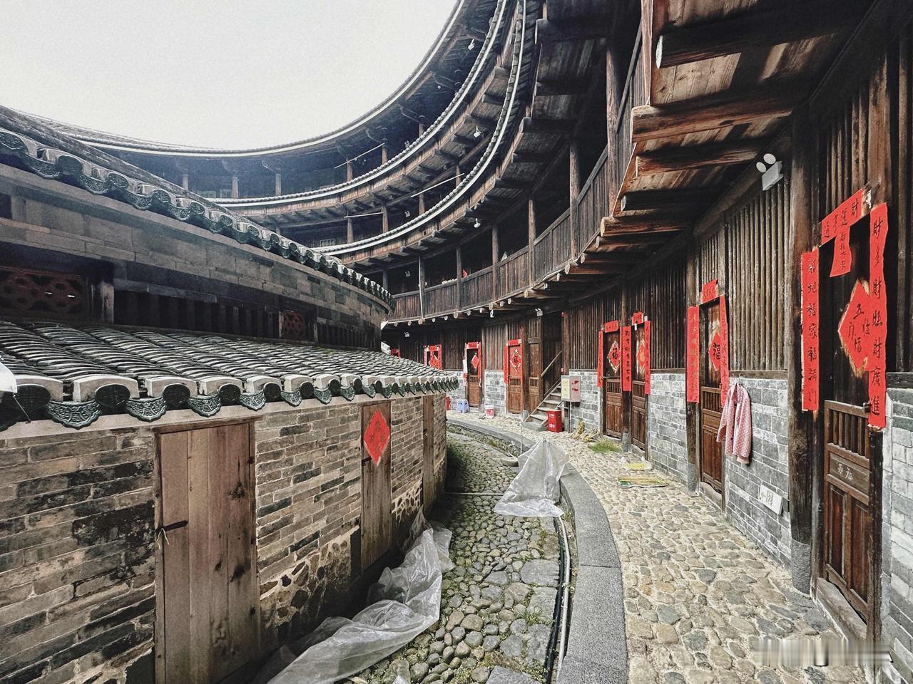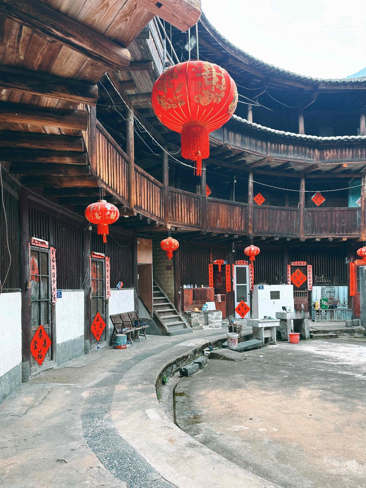 有些楼里老人小孩依旧居住,充满生活气;部分空楼过年时族人会回来贴春联、吃年饭。