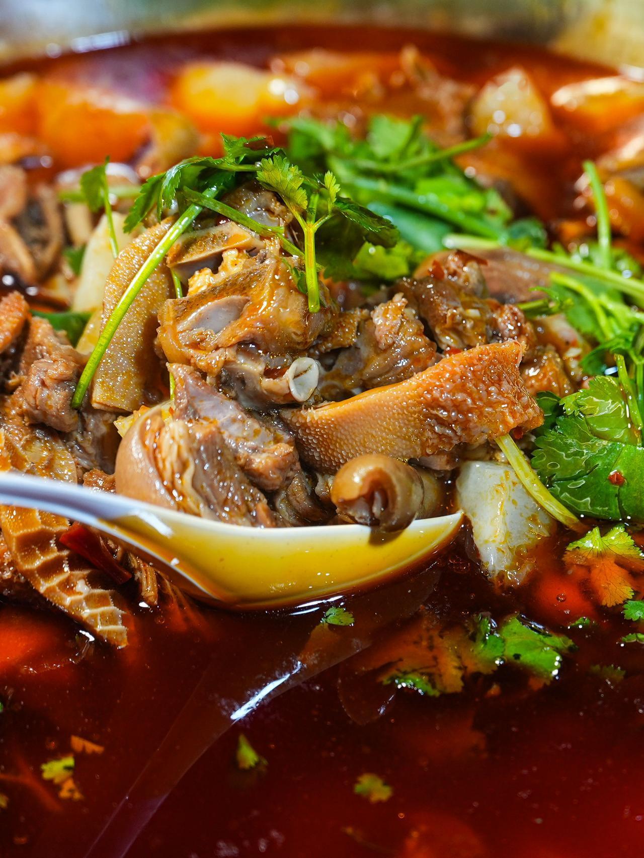 黄羊汤锅的香气就勾着人挪不动脚 ,汤汁咕嘟咕嘟翻滚、热气裹着肉香升腾,