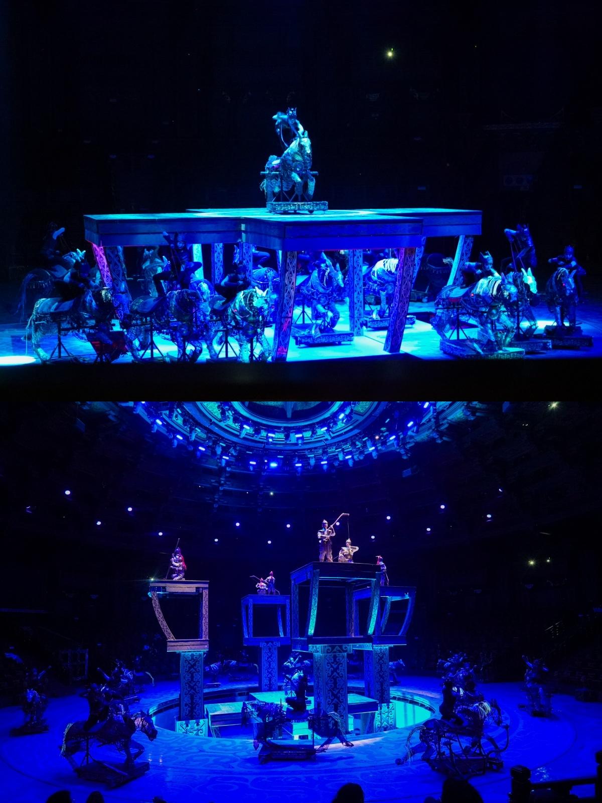 打破传统镜框式舞台,搭配巨型环幕、机械升降舞台和高空威亚,