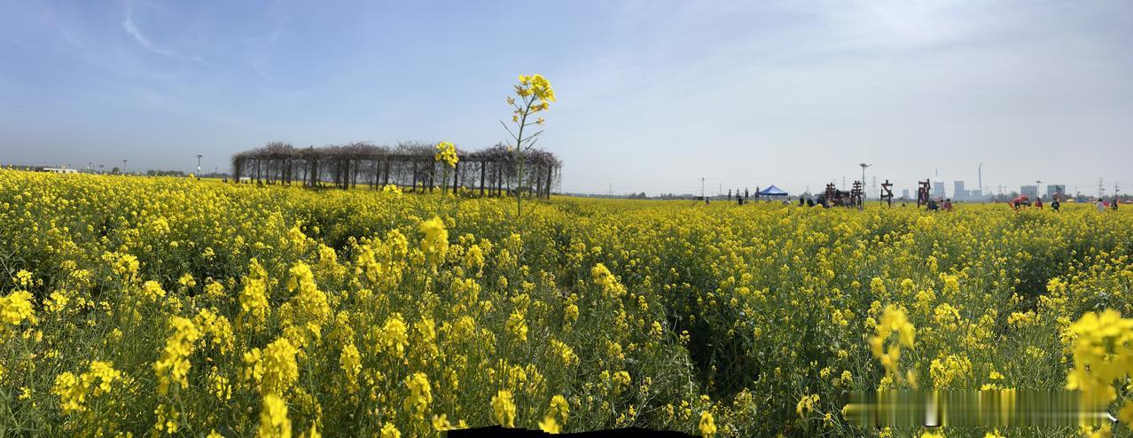 山东济南章丘区平陵古城里的油菜花海