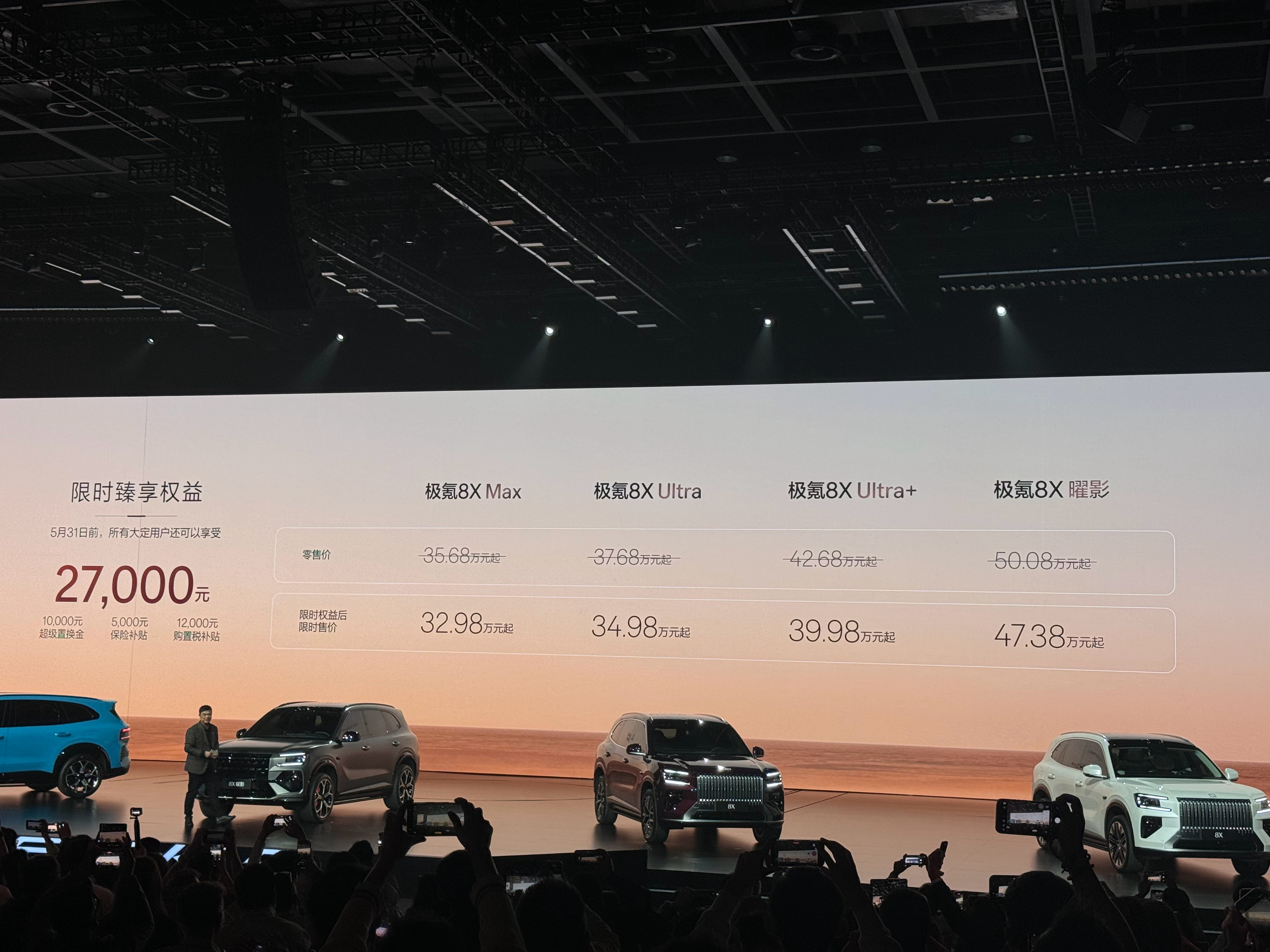 限时省2.7w,还连续五年送1000度电,新能源时代旗舰大五座 32.98万元起!这诚意怎么样极氪8X首发舱驾融合超级智能体