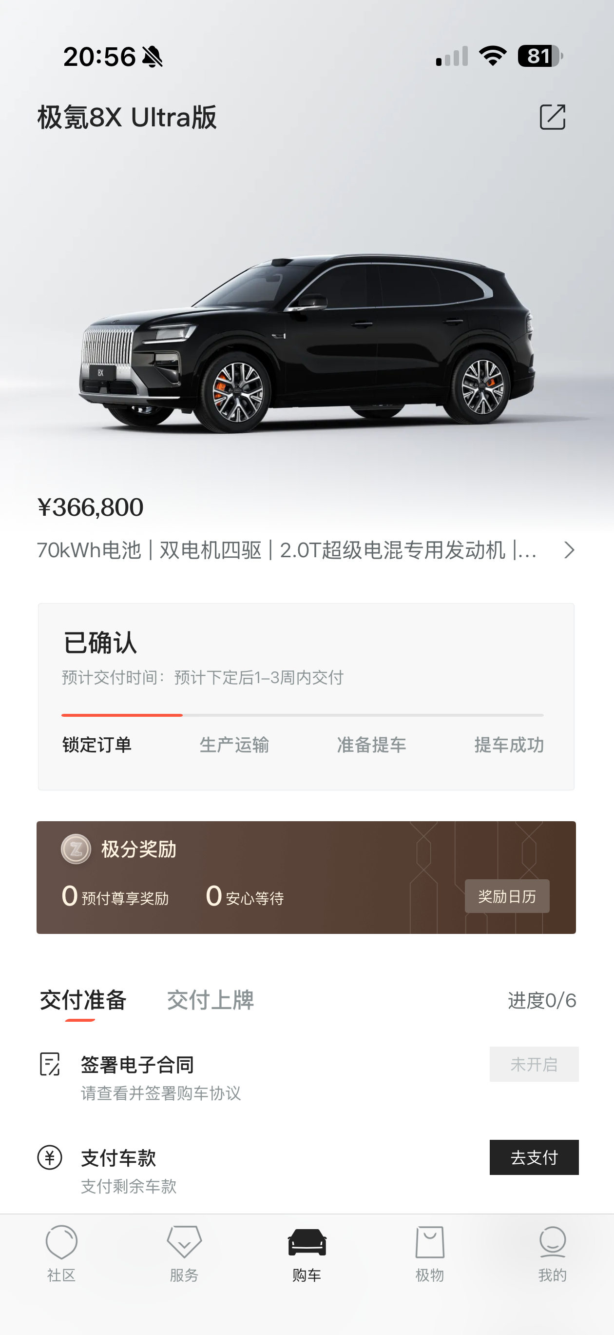 极氪8X锁单了!Ultra版选了70度大电池预售价41万,现在叠加各种权益36.68万这价格感觉还不错,我的第一台极氪