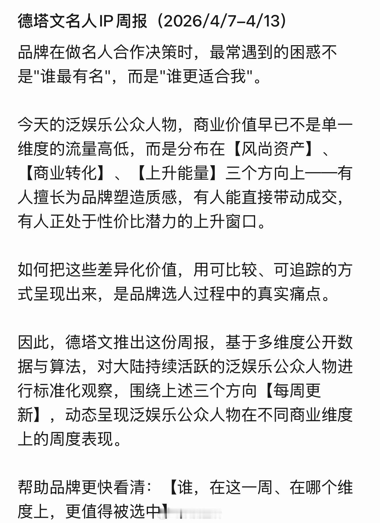 德塔文名人IP周报来了