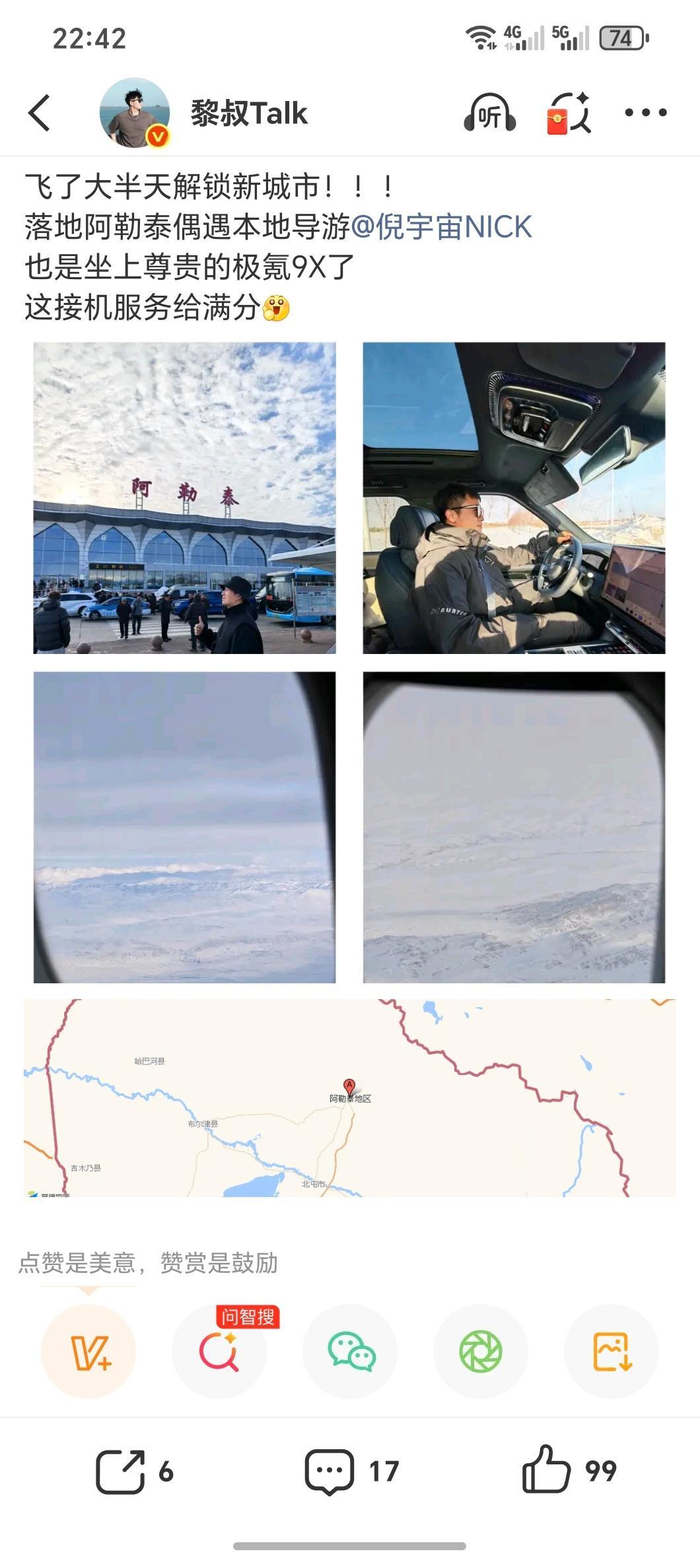 说起来我俩跟8X的缘分还始于阿勒泰在新疆开着他的极氪9X一路穿越冰雪这辆车的底盘操控就让我印象深刻