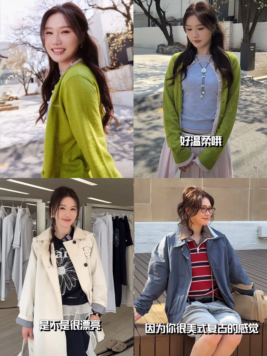 撞色开衫是整套的灵魂 粉绿拼接一下就有了韩味