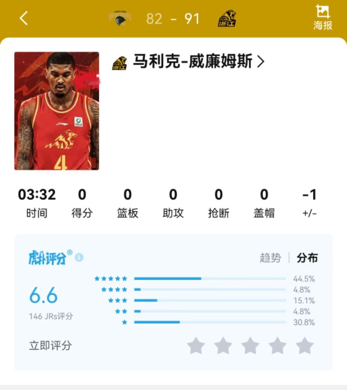 广厦球迷完全不用担心新来大外援马利克威廉姆斯的发挥!很多球迷看到王博只给了威廉姆