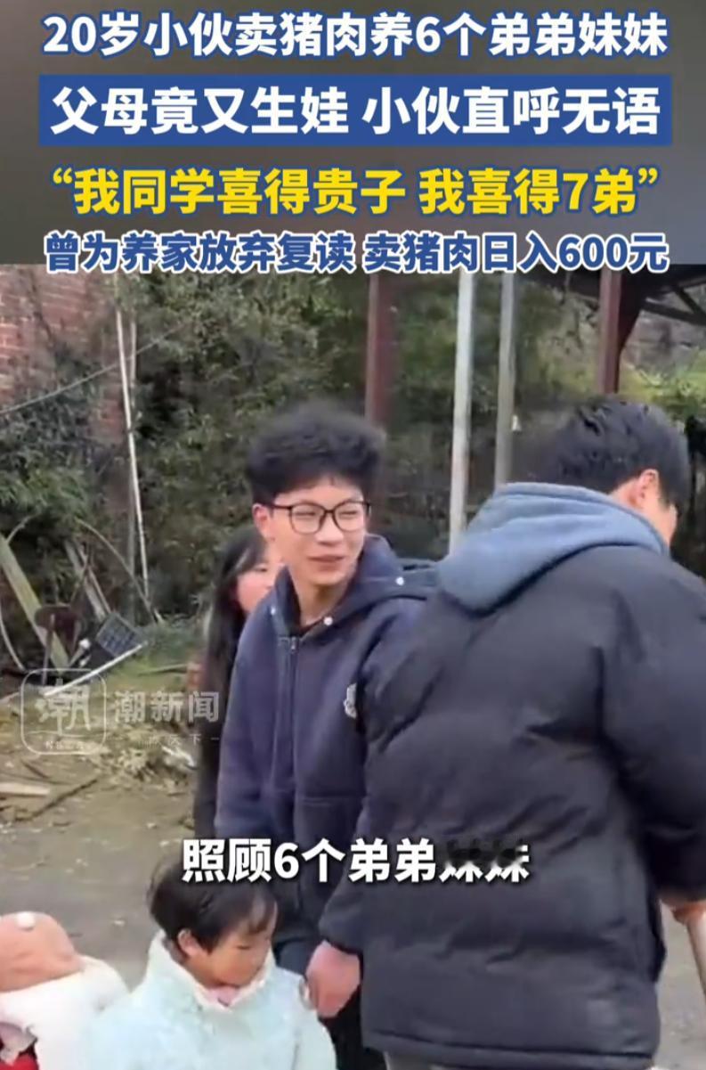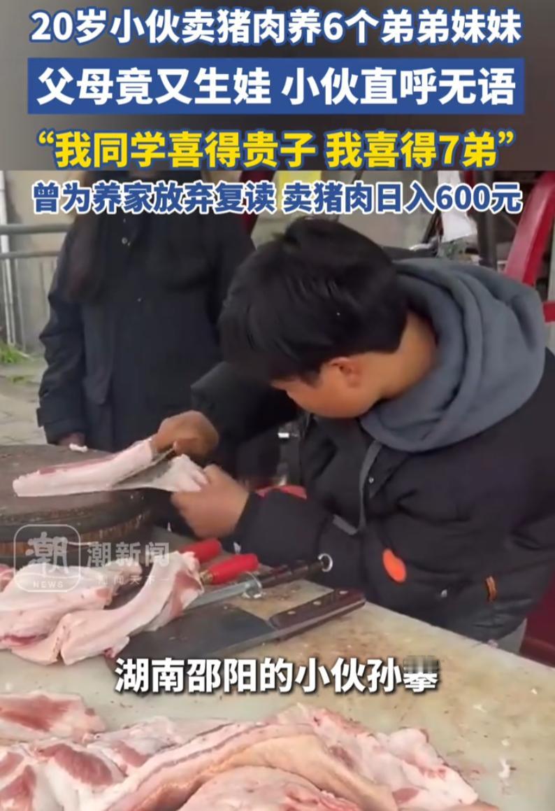 小伙卖猪肉养6个弟弟妹妹 父母又生娃