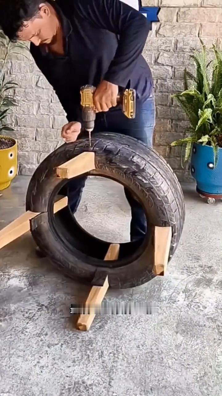 轮胎桌子。 谁能想到被人丢弃的废旧轮胎在巧手改造下竟能变成颜值与实用兼备的茶桌。