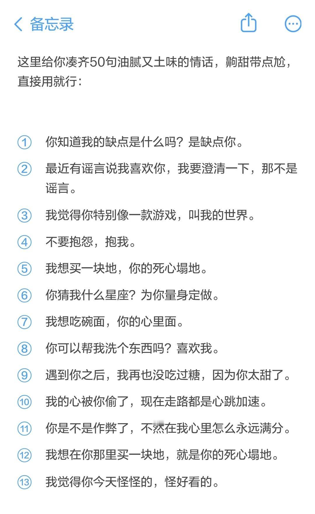 50句油腻又土味的情话,齁甜带点尬,直接用