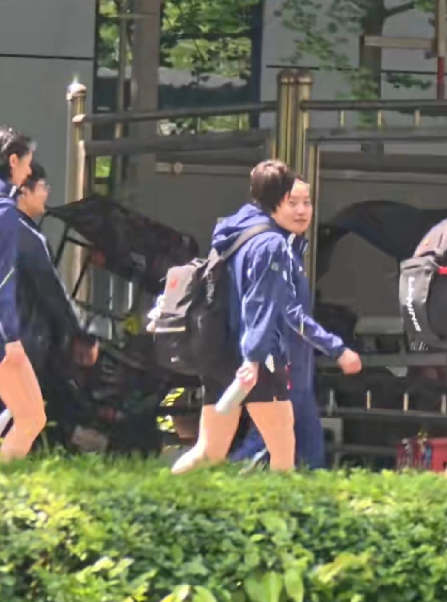 成都国乒训练基地,好久不见的任浩教练今天陪着做完技术训练的曼昱一起去训练体能。曼昱身边还跟着孟队医和体能教练。