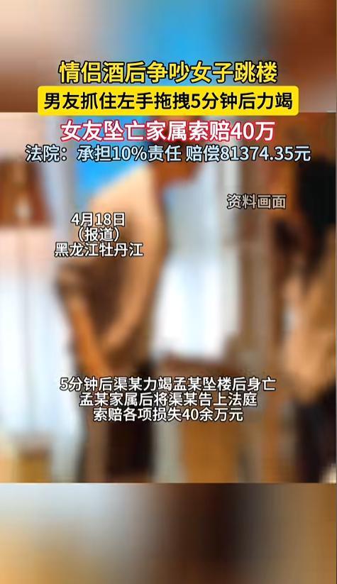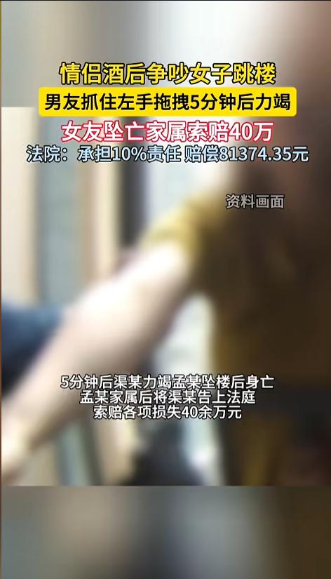 法院审理认为,女子一个成年人,自己喝了酒,自己选择自残,自己想要跳楼,对她自己的死亡,应当负主要责任。但男子与她吵架,也是一个诱因,虽然尽力救助了,但仍不能免除责任,最终判决男子担责10%,赔偿8万余元。