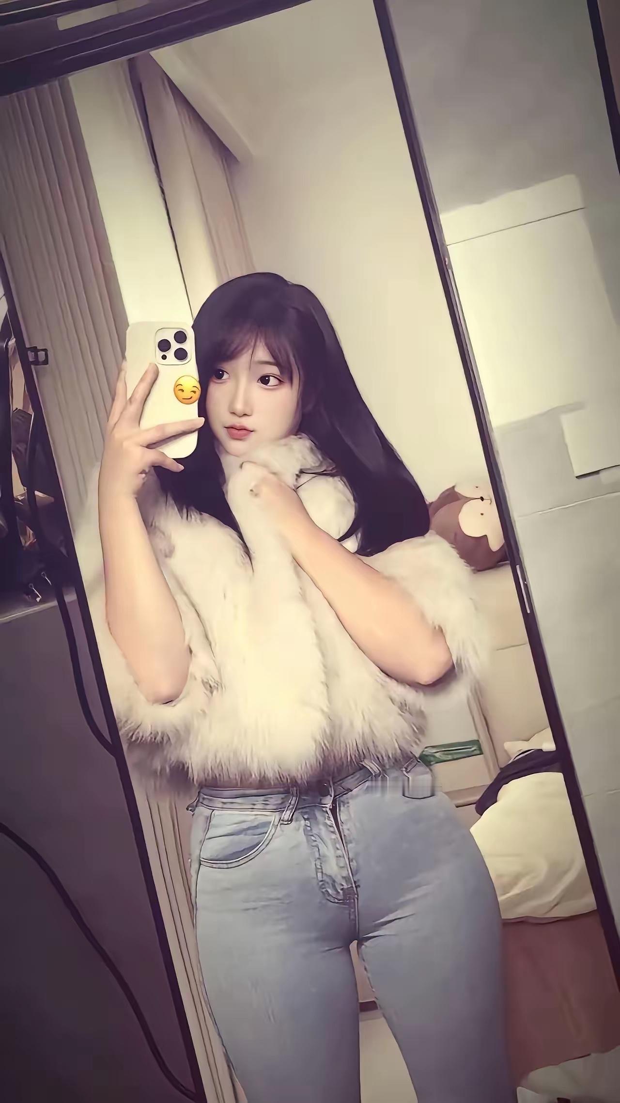 镜子里的温柔时刻☺️对着落地镜按下快门的瞬间,好像把一整天的松弛都定格了下来。暖黄的灯光裹着房间的每一个角落,毛茸茸的上衣软乎乎地贴在肩上,像把初冬的温柔都披在了身上,连带着牛仔裤的线条都柔和了几分。