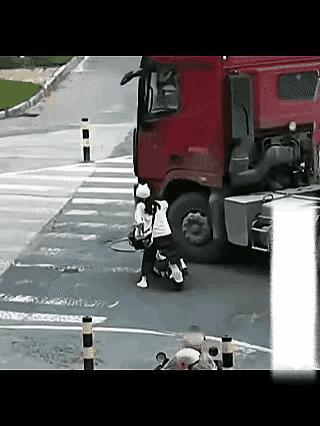 这个姑娘显然是不知道什么是内轮差,更不知道它的危害有多大?人来到这个世界不容易,