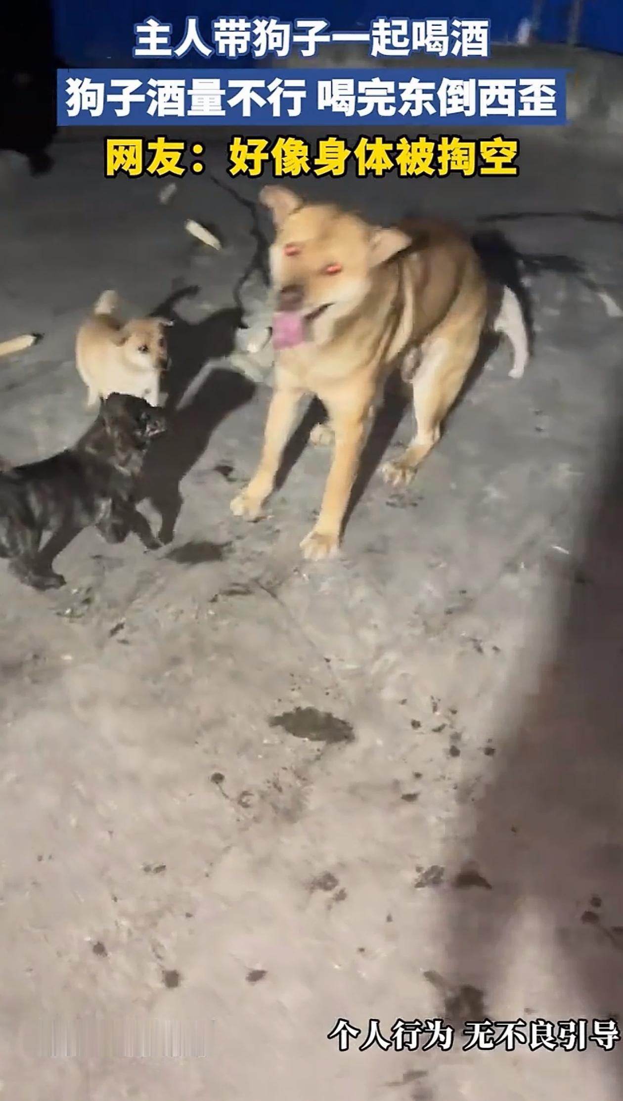 可千万别觉得这事好玩,实际上给狗子喝酒是在害它!狗子体内没有专门消化酒精的酶,只能强行用肝脏吸收,这对它的身体危害特别大。而且酒精还有可能影响狗子的神经中枢,导致它失去对身体的控制,才会出现画面中不听使唤的情况。