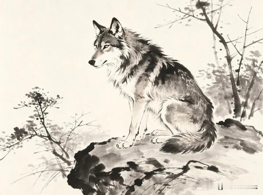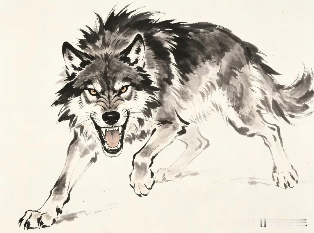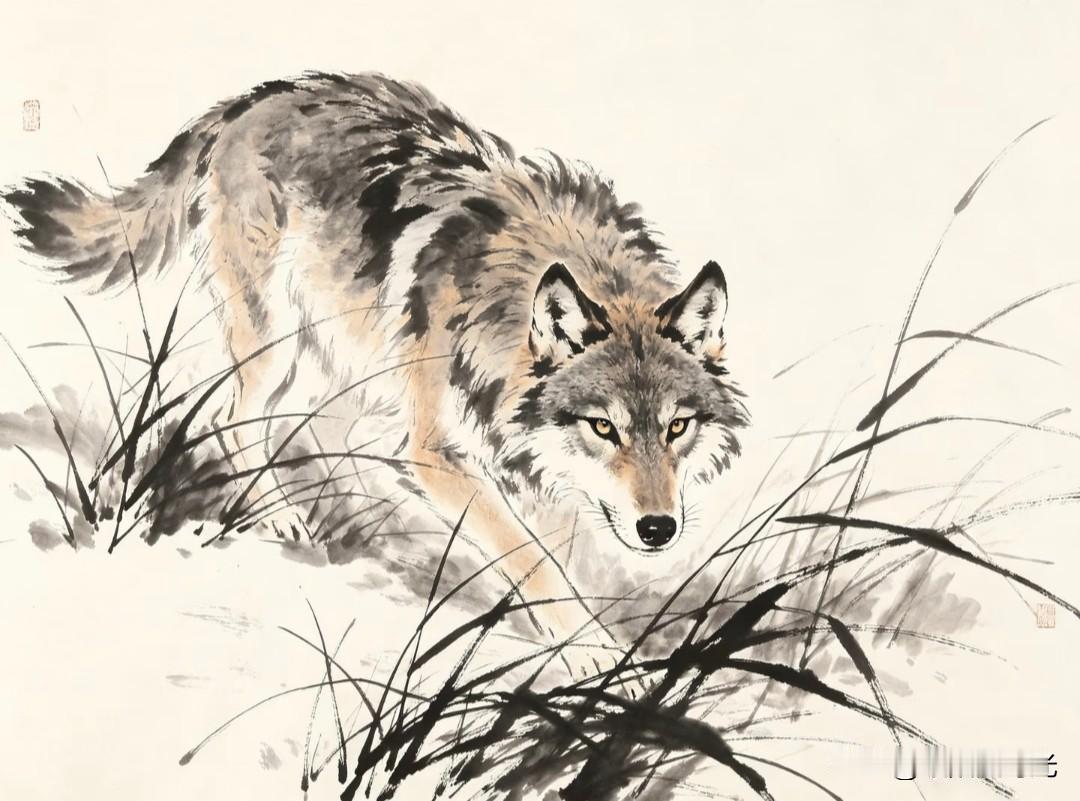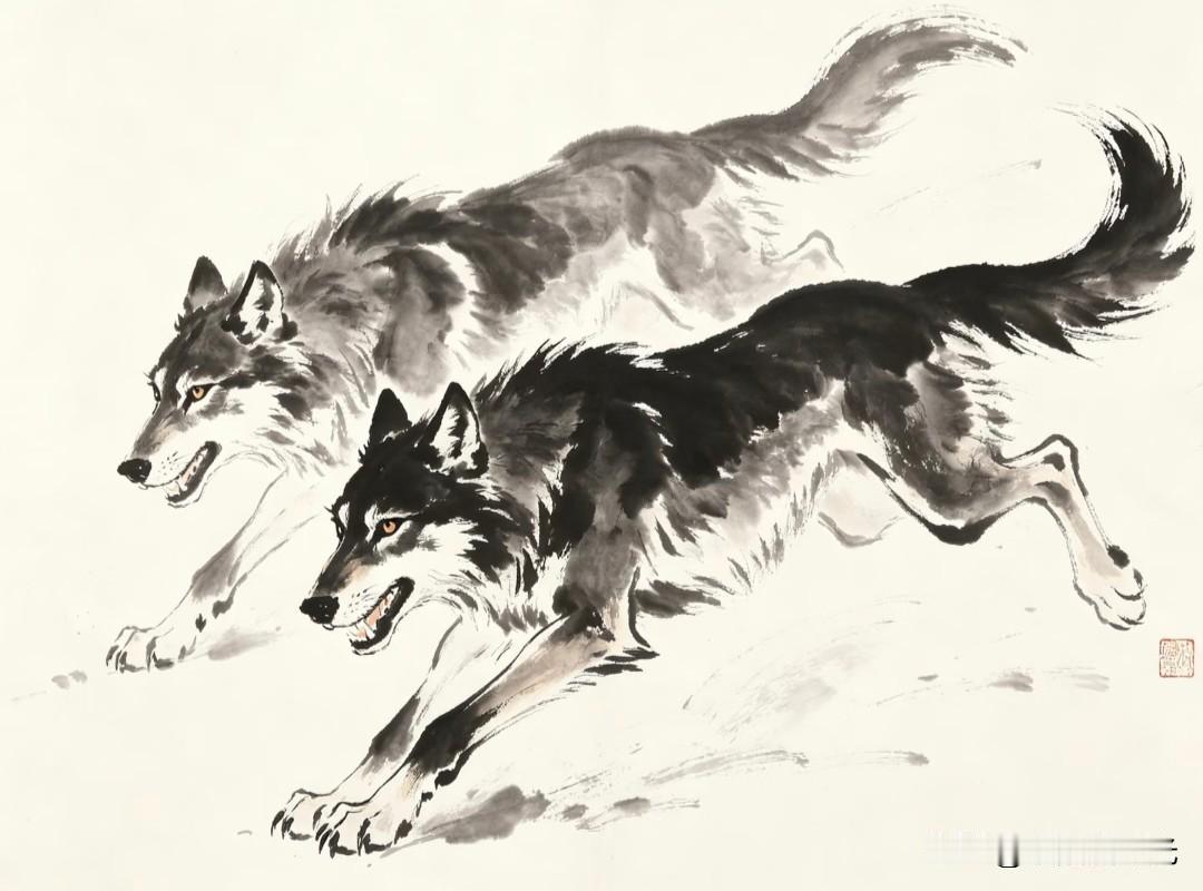 水墨走孤狼,纸上生野性。