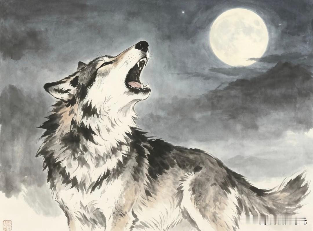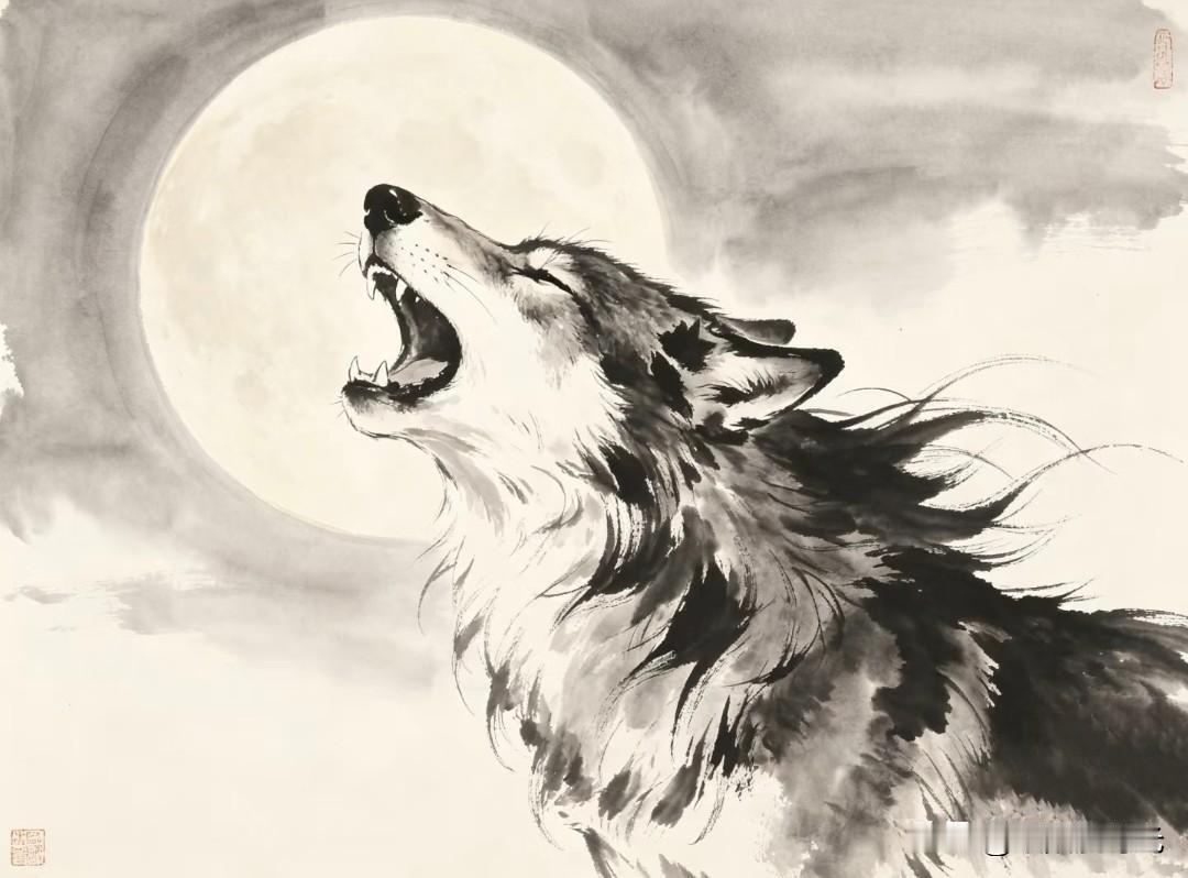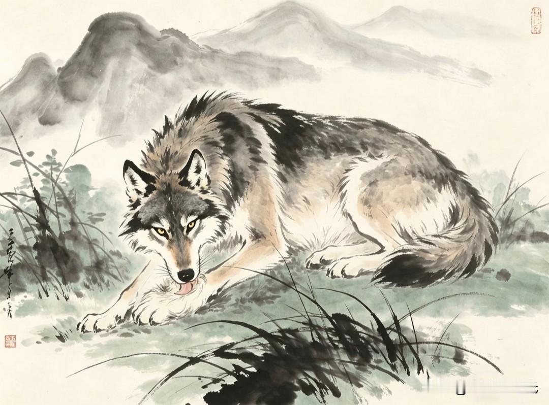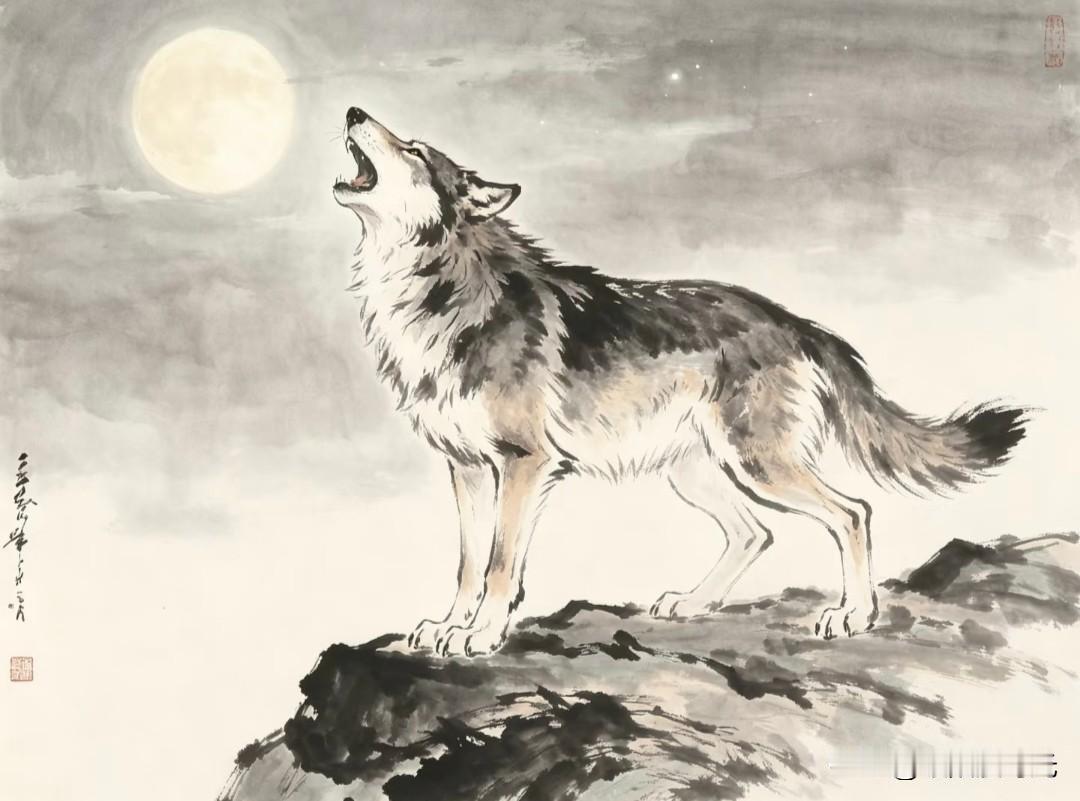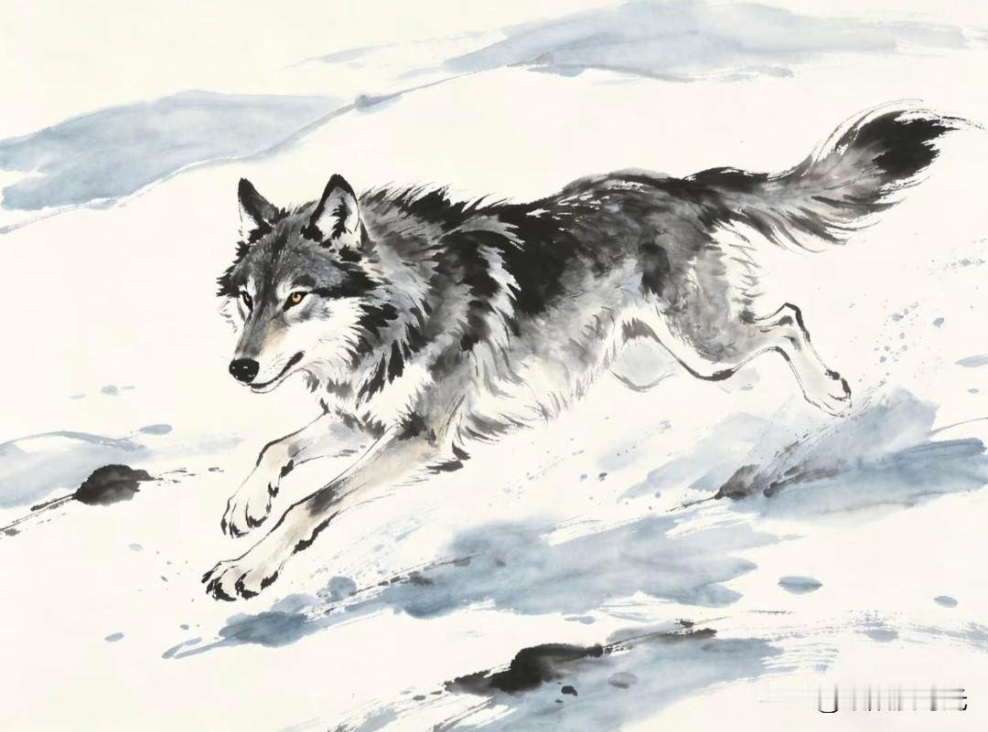 水墨走孤狼,纸上生野性。