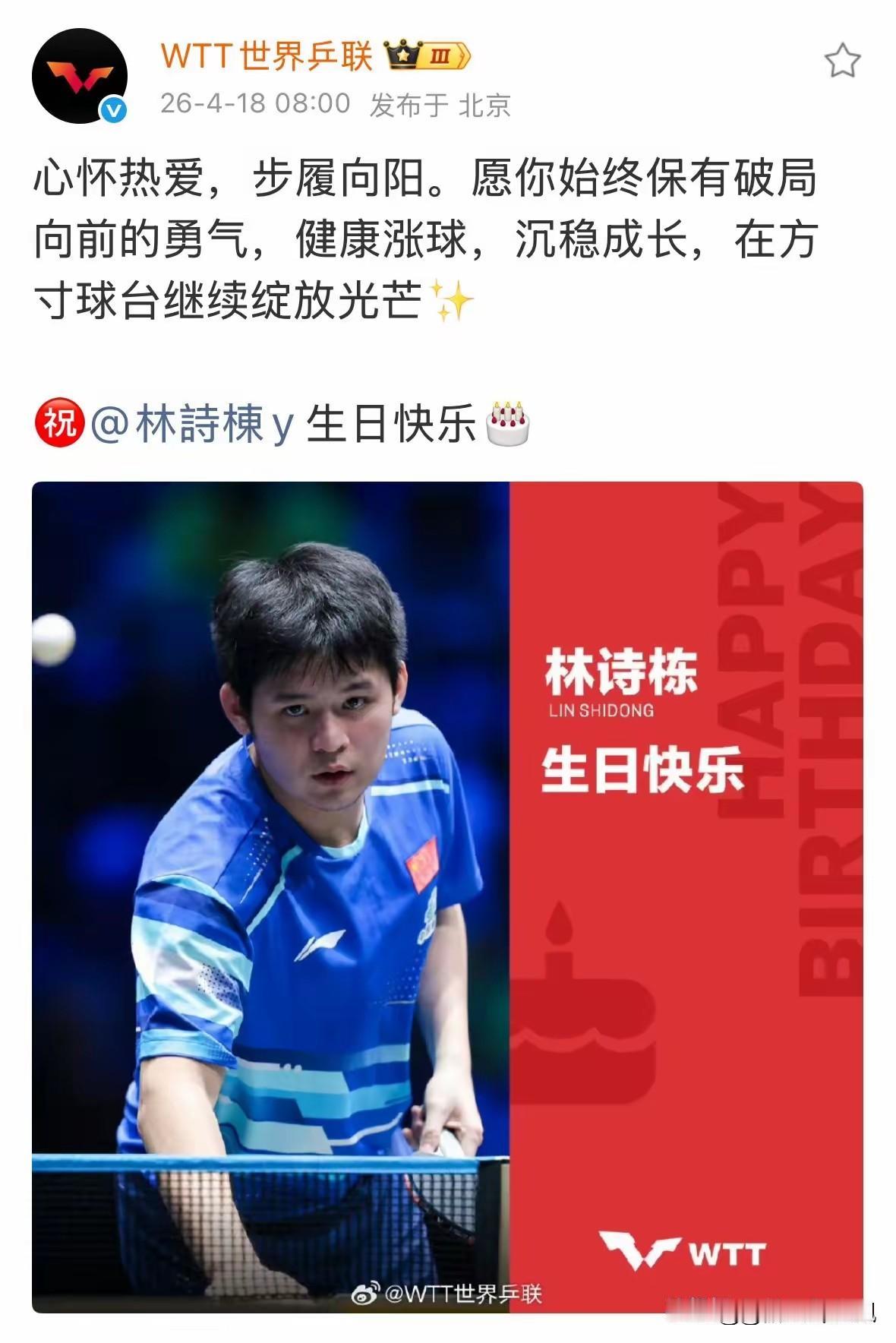 过了今天,林诗栋就21岁了,祝林诗栋生日快乐,能不能重新定义自己,伦敦世乒赛见分晓。加油,21岁的阳光大男孩——林诗栋!