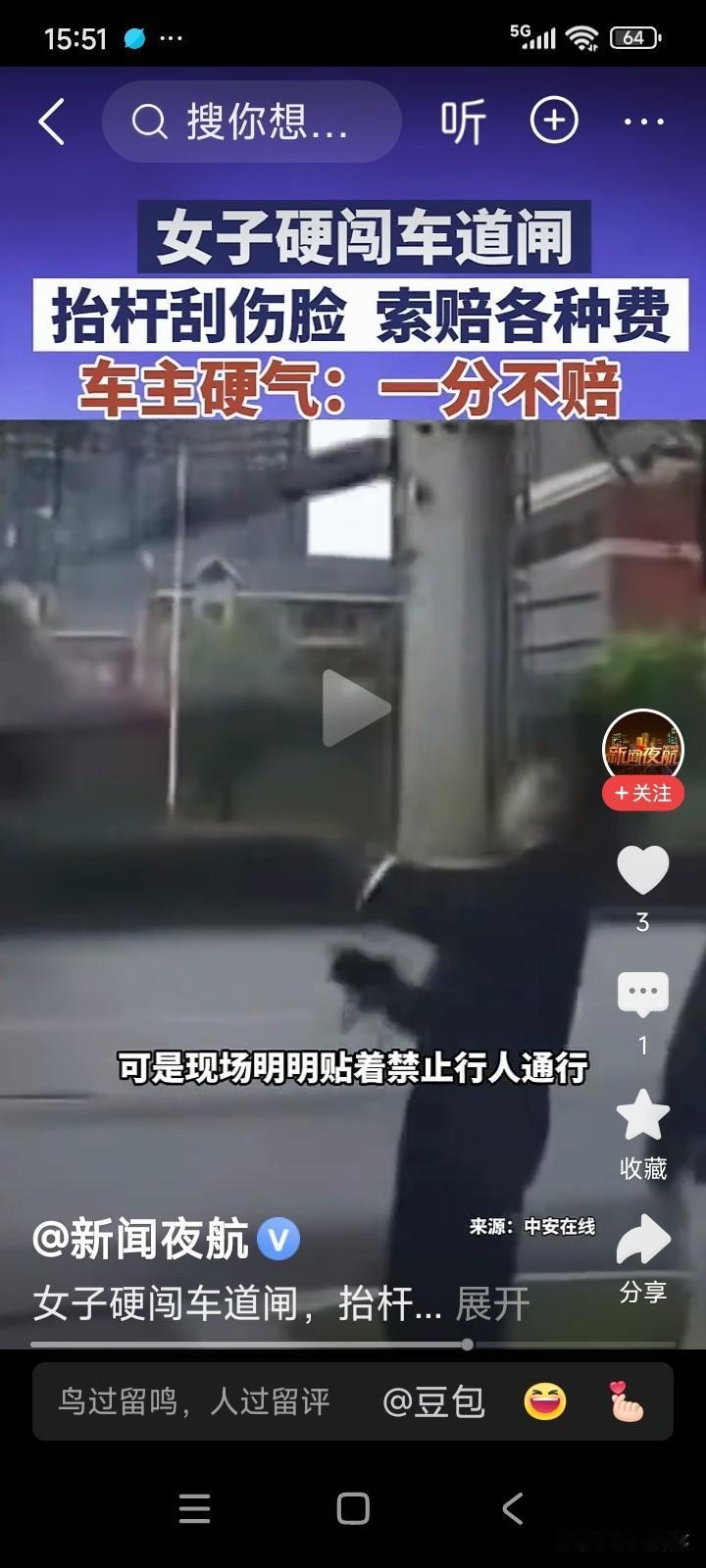 大妈又要求物业赔偿,称物业有道闸的管理权,应承担管理责任。物业则表示不会赔偿,因为道闸上明明写着禁止穿梭,后果自负。