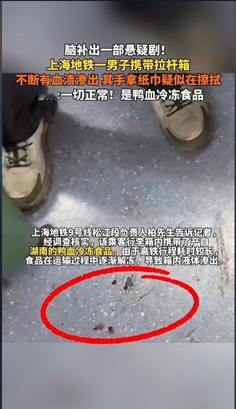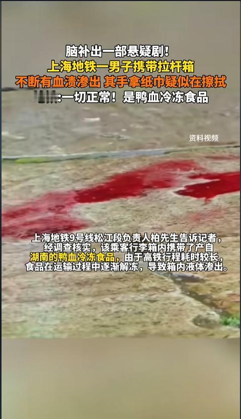 信息来源:《脑补出一部悬疑剧!上海地铁一男子携带拉杆箱 不断有血渍渗出》浪涨新闻
