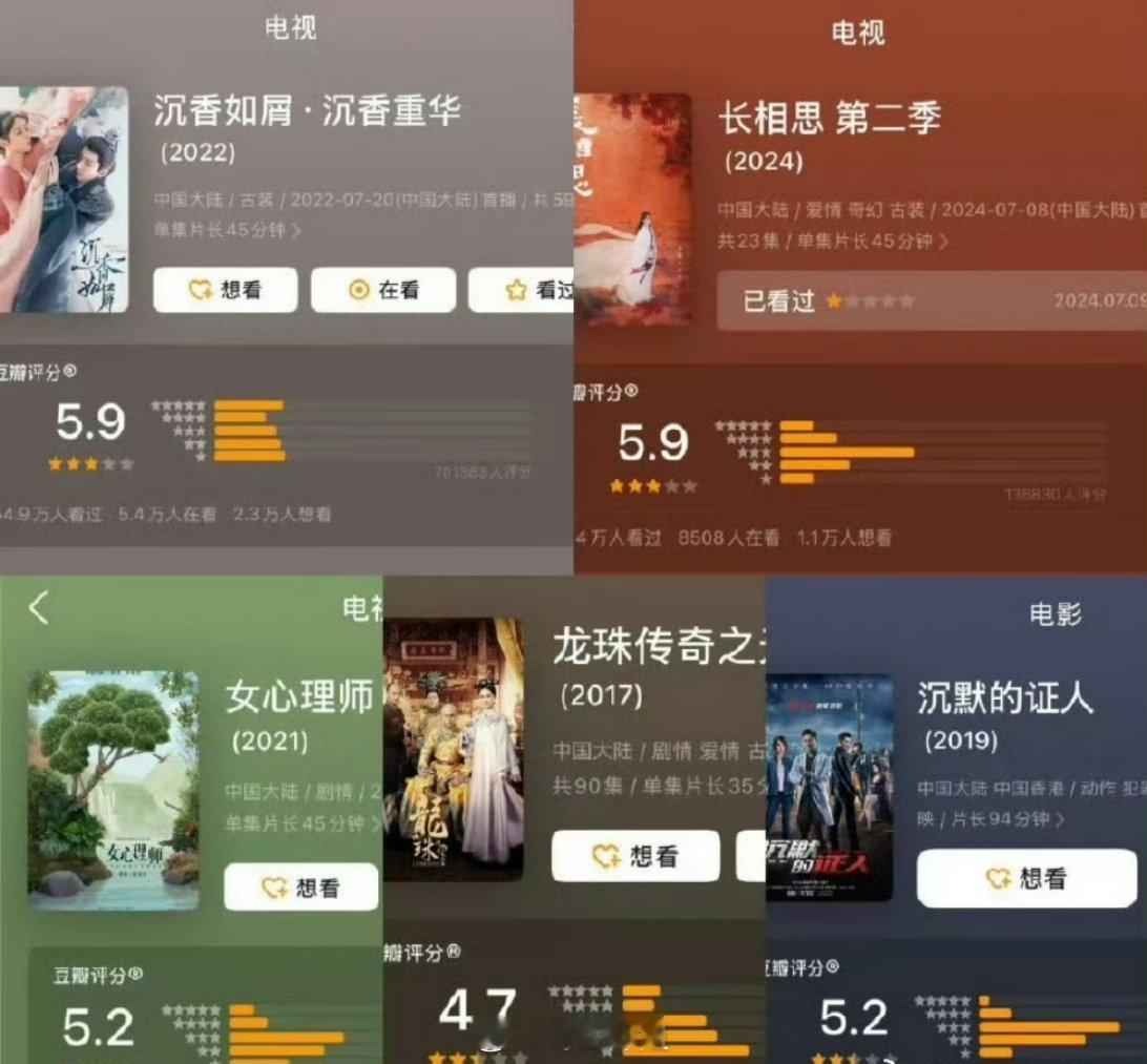 有网友汇总了一下杨紫和迪丽热巴这么多年来的主演的女主剧的db评分,客观评价一下,
