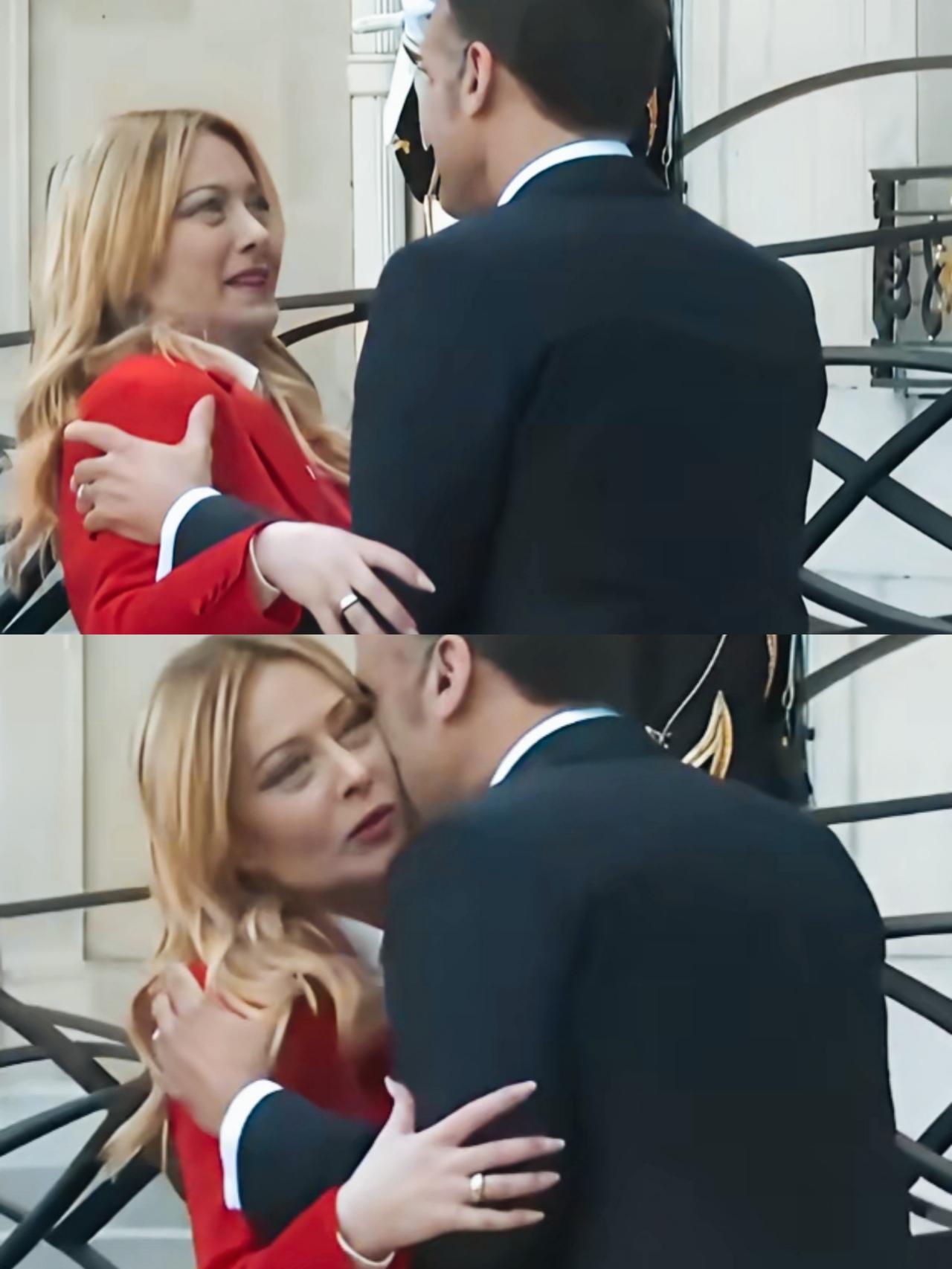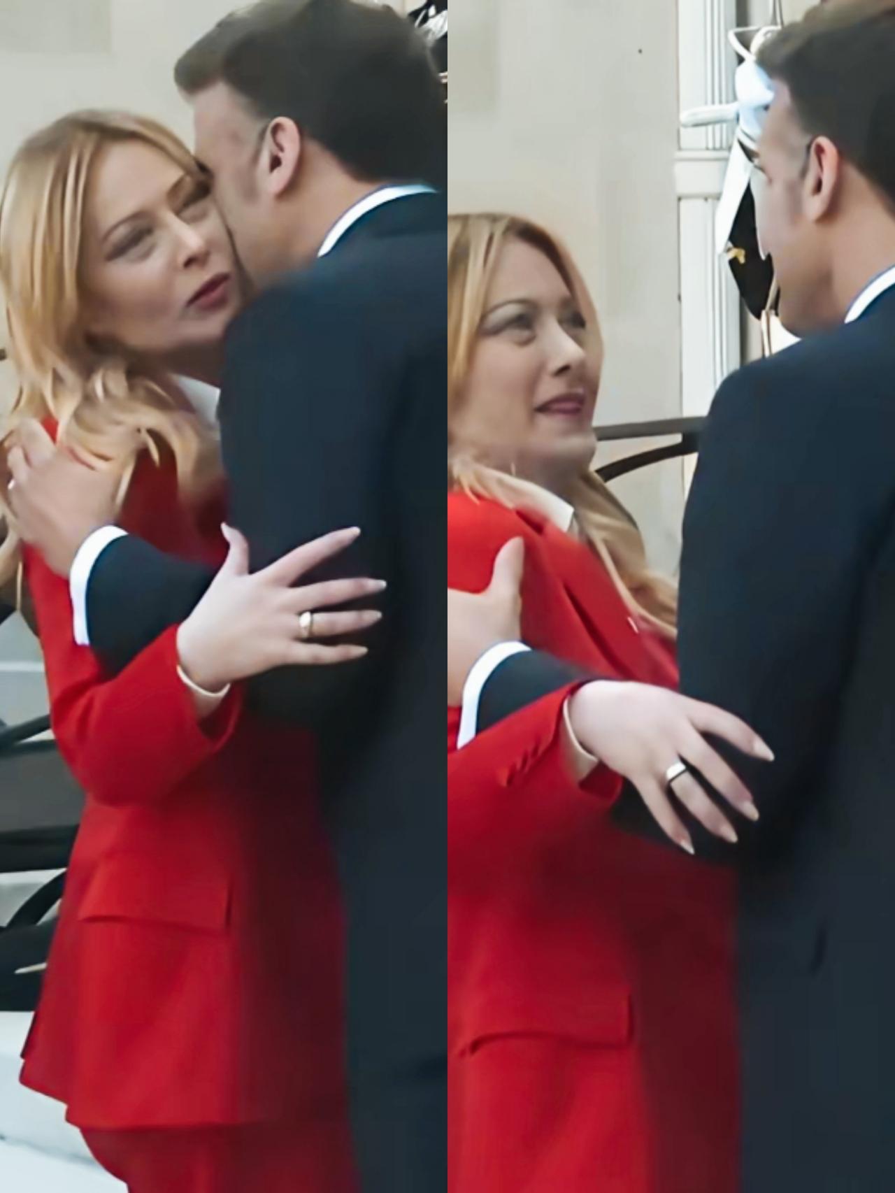马克龙见了梅洛尼很激动啊!非常的热情啊! 梅洛尼面对马克龙的热情,貌似有点准备不