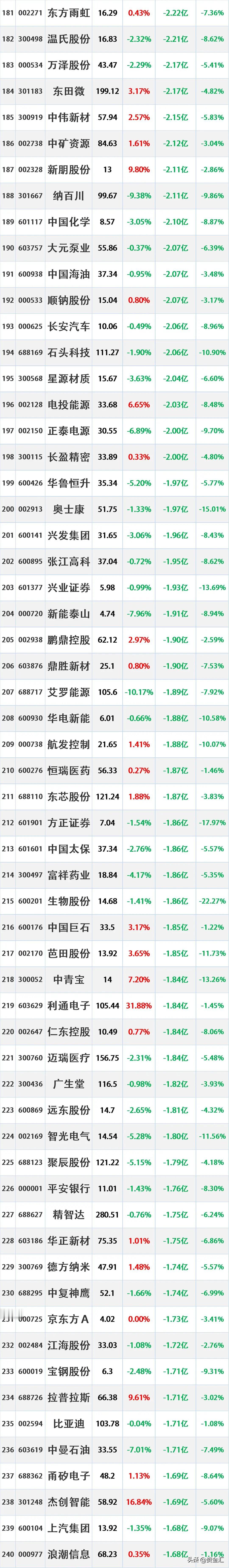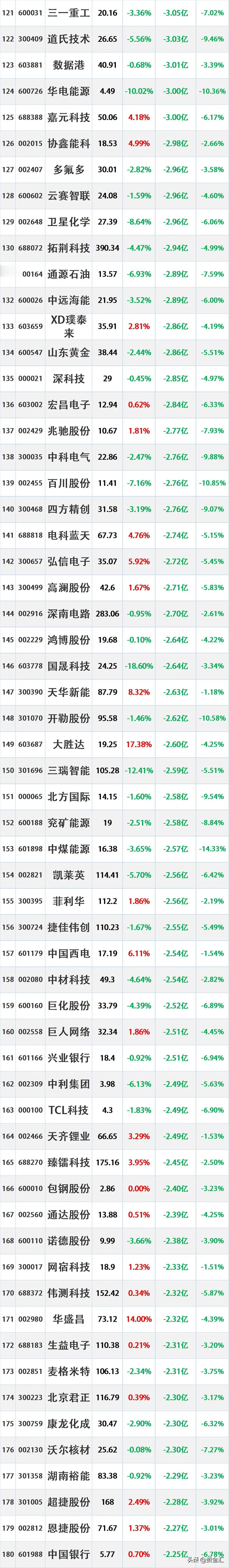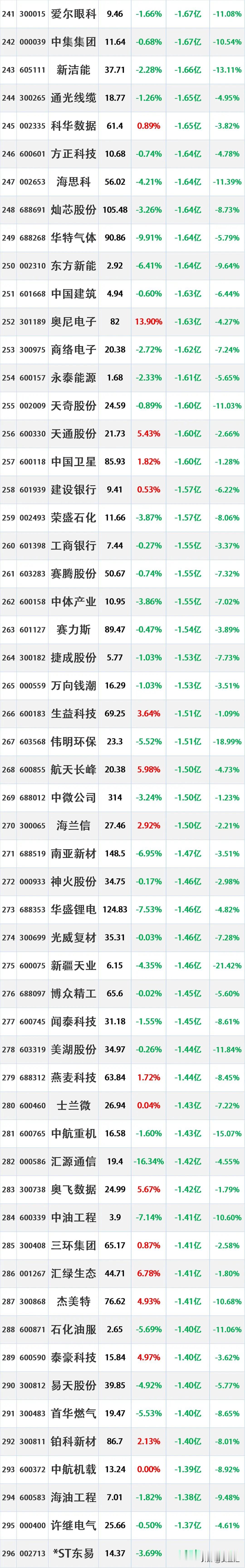 4月17日主力资金净流入—净流出前20名榜单