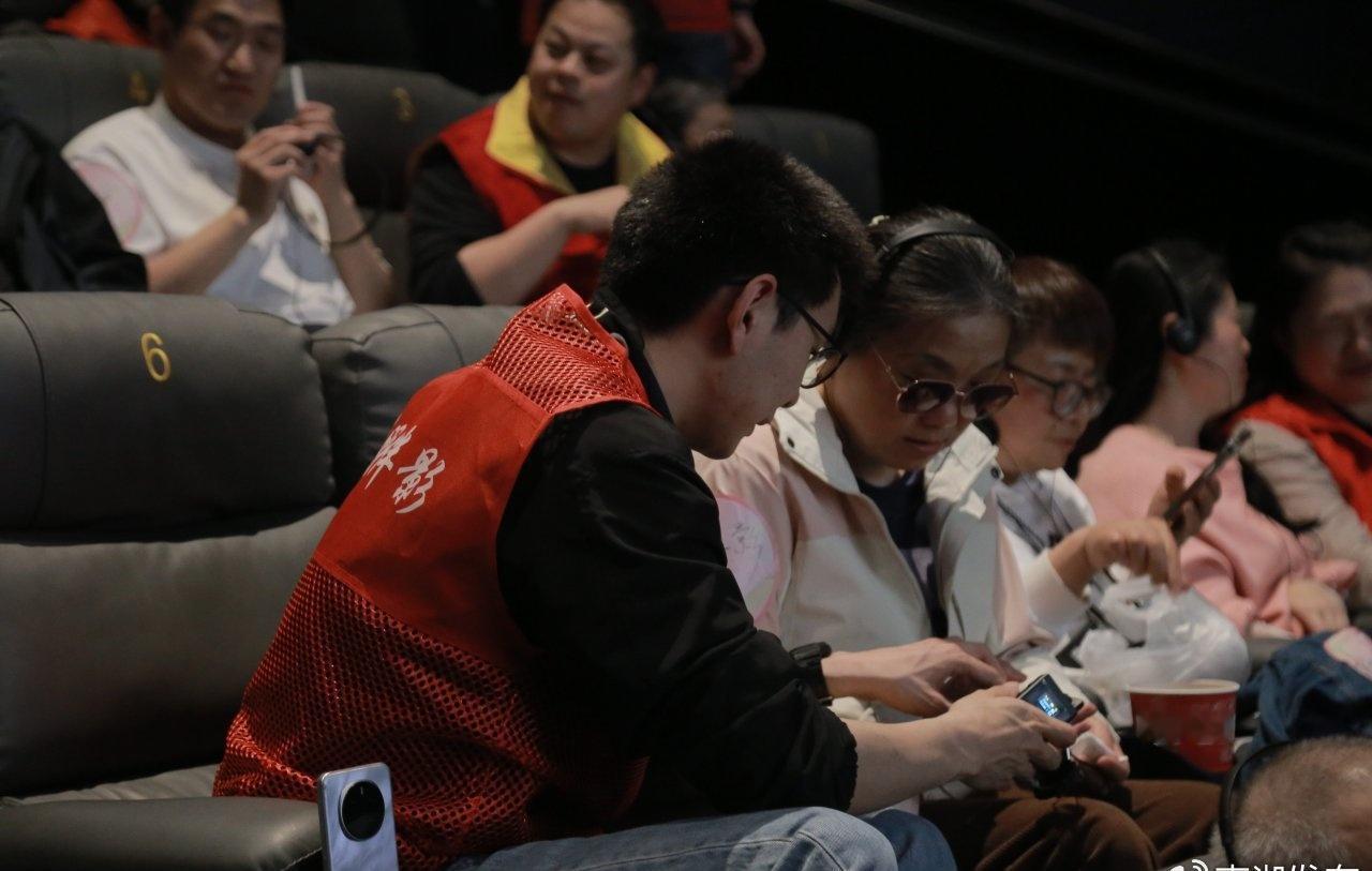 视障观众戴着耳机,在影片对白与音效的间隙,细腻的画面解说缓缓流淌,帮他们在脑海中勾勒出生动的场景。志愿者则全程陪伴在侧,随时提供帮扶。