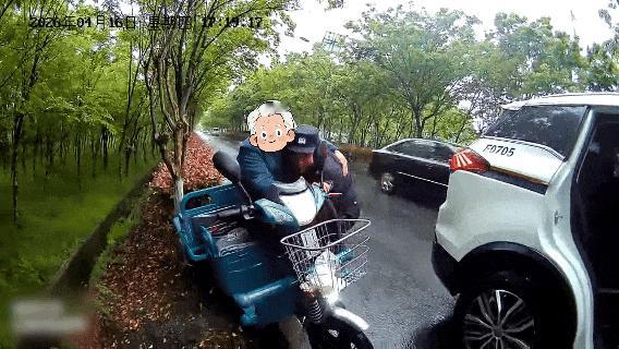 民警冒雨调取监控、沿路搜寻,终于在湿冷的乡间小路找到老人。因长时间久坐,老人腿脚僵硬不便,民警暖心将其抱上警车,一路安慰护送回家,又小心抱进屋内,才放心离开。
