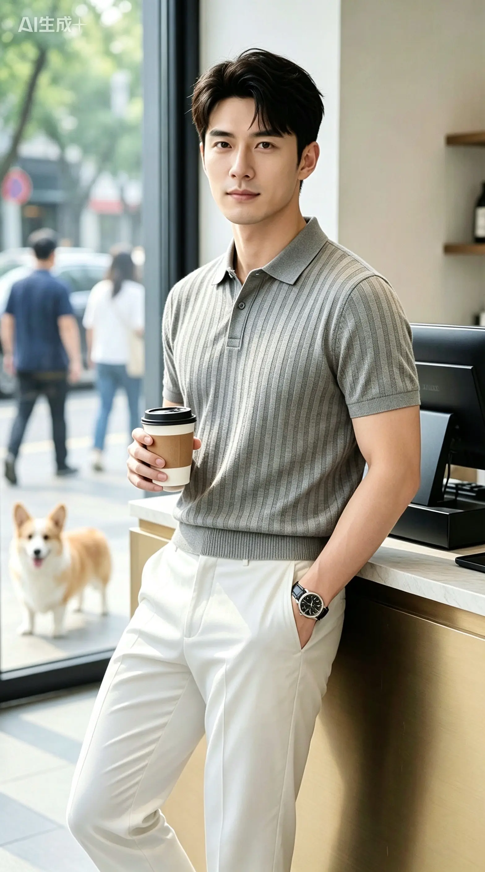 回头率超高的时髦老钱风!这组大地色系穿搭太绝了,浅咖针织Polo衫搭配藏青阔腿