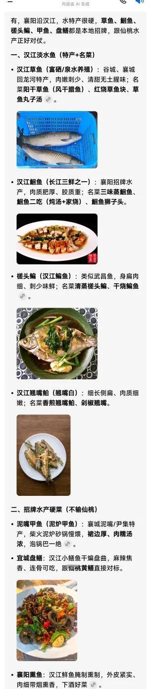 襄阳本地除了宜城麻辣大虾,还有襄阳牛杂面- 宜城盘鳝- 襄阳缠蹄- 襄阳黄酒- 龙王烧鹅、泥嘴甲鱼- 孔明菜(襄阳大头菜)、汉江鮰鱼、富硒草鱼…