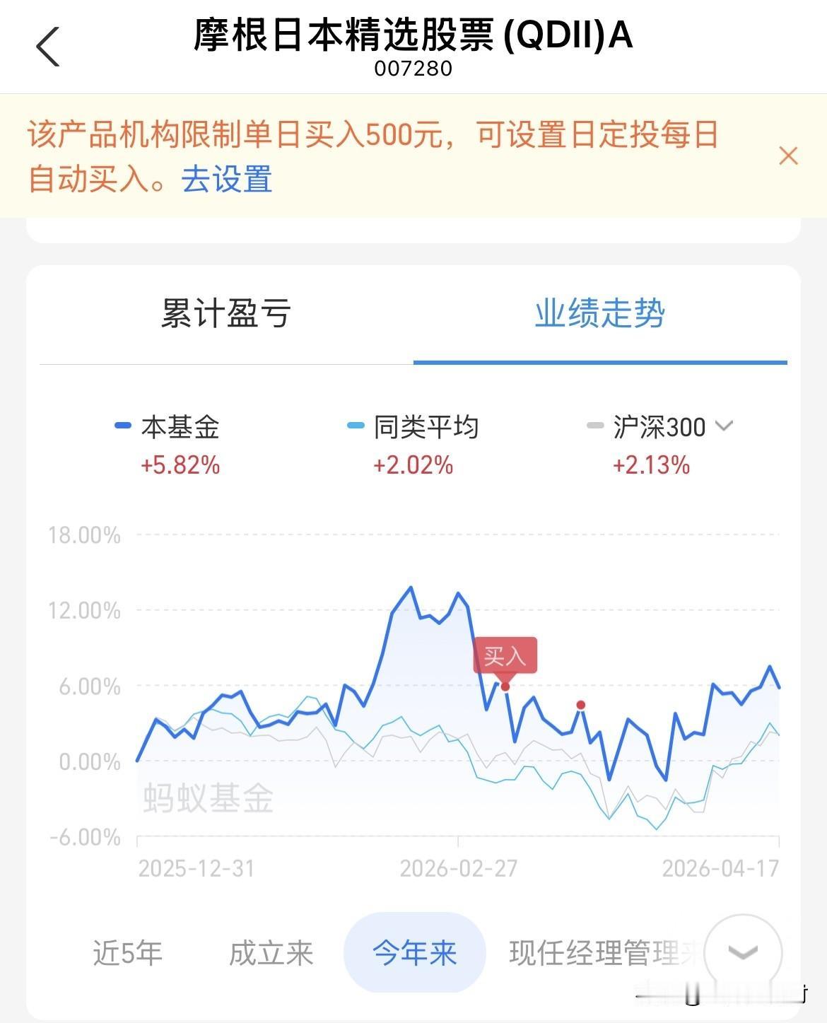 最后,就是比较稳的日本股票基金。这只基金很稳,上个月底随着国际局势的震荡快速探底后,在4月初也开始强劲反弹。看好日本大企业的盈利回升和高分红率,打算继续持有。