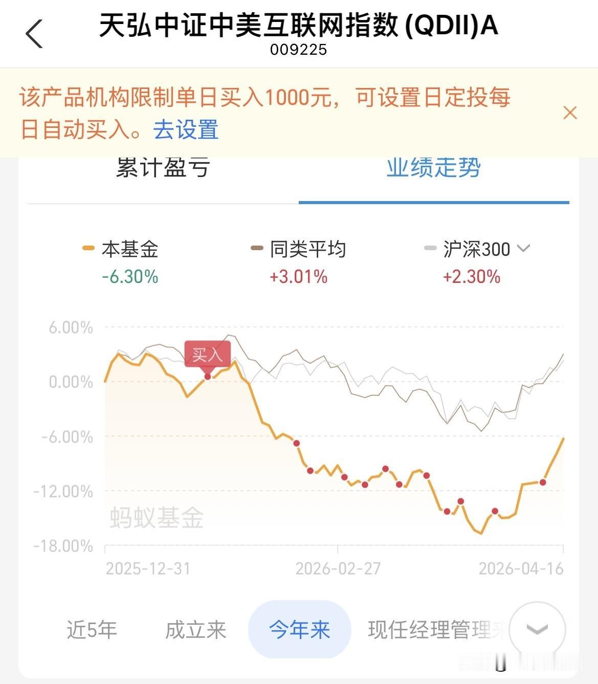其次,是美国的指数基金持续回调,主要是标普500和纳斯达克。26年开始,美国一系列的骚操作,让股市大幅震荡。从开年就开始一路走低,持续蚕食之前留下的收益。唯一庆幸的是,最近美伊战争暂停,让市场快速反弹,两个指数基金的收益迅速回升。在低位的时候,这两只基金也都略有加仓,继续看好美国的股市。