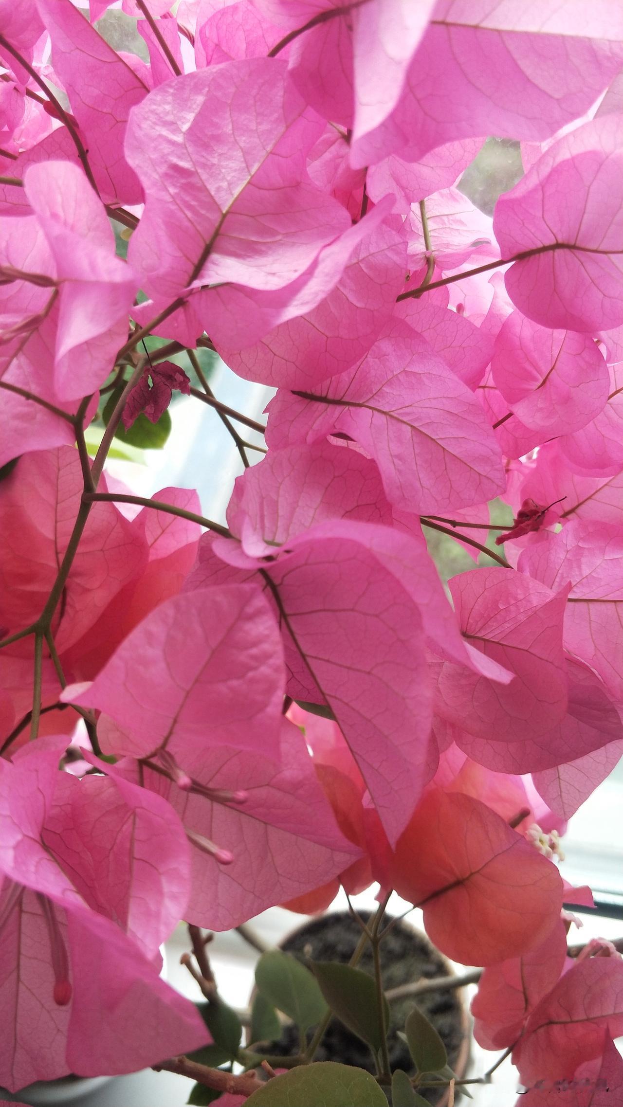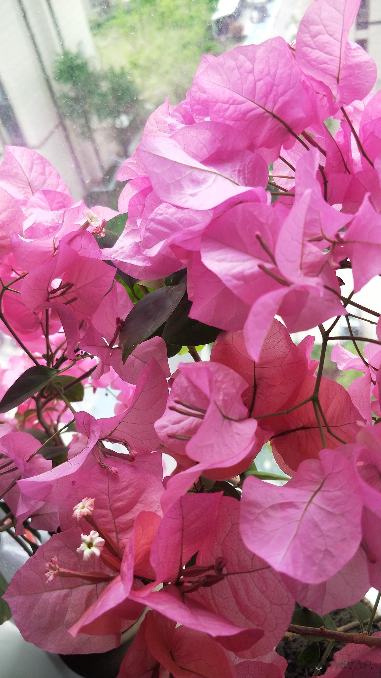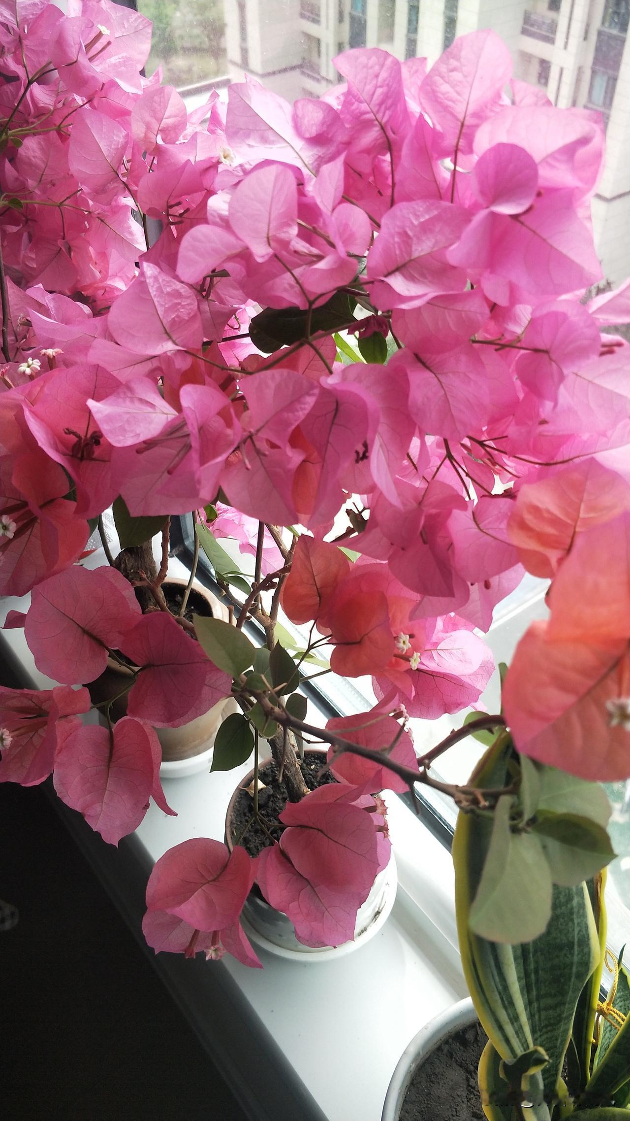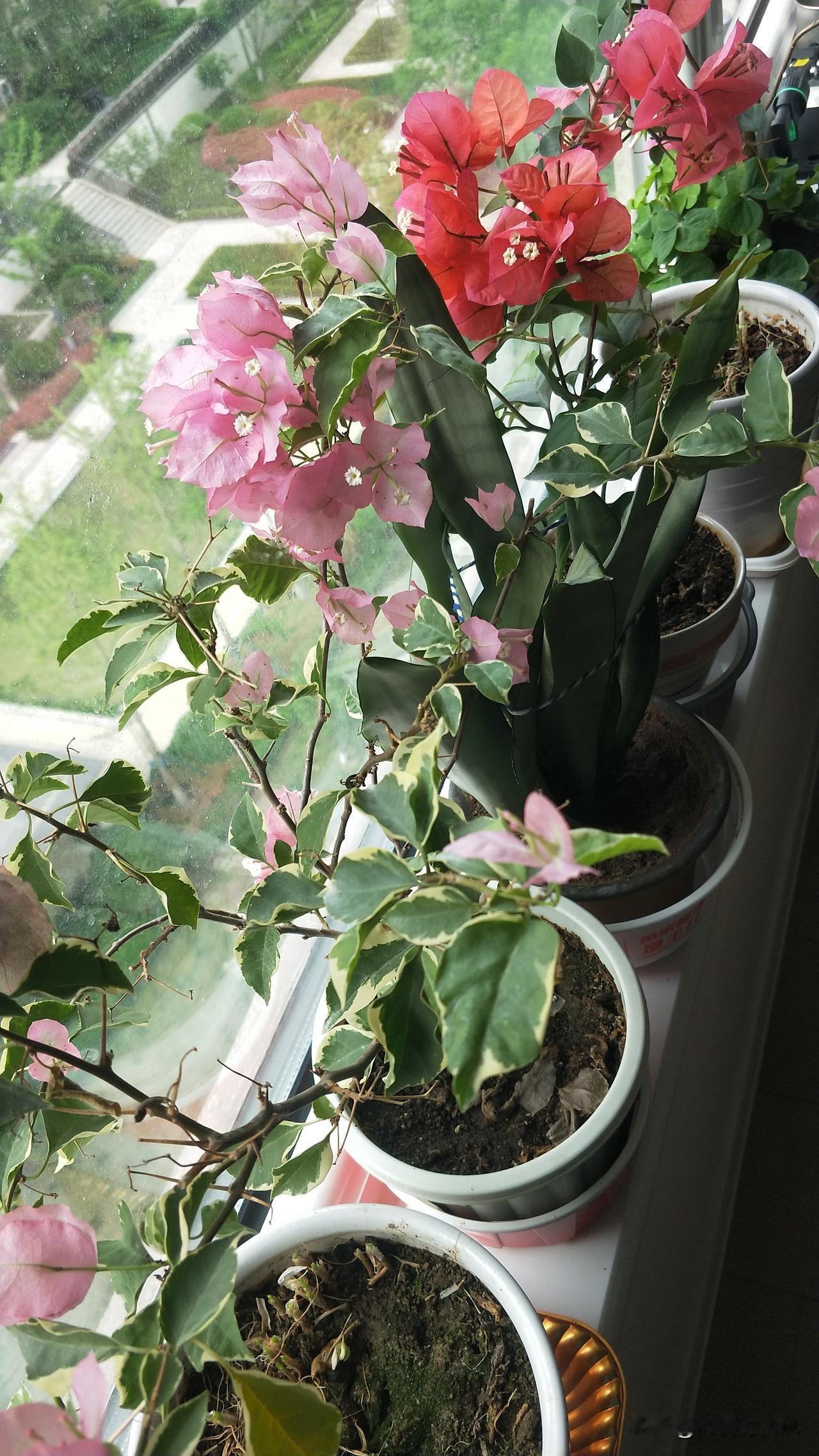 阳台上置放着几株小小的三角梅三角梅树苗盆栽三 角梅,左看一眼、右看一眼,上下打量三角梅盆栽花卉 不见花不见朵,耐不得性子了——花坛三角梅