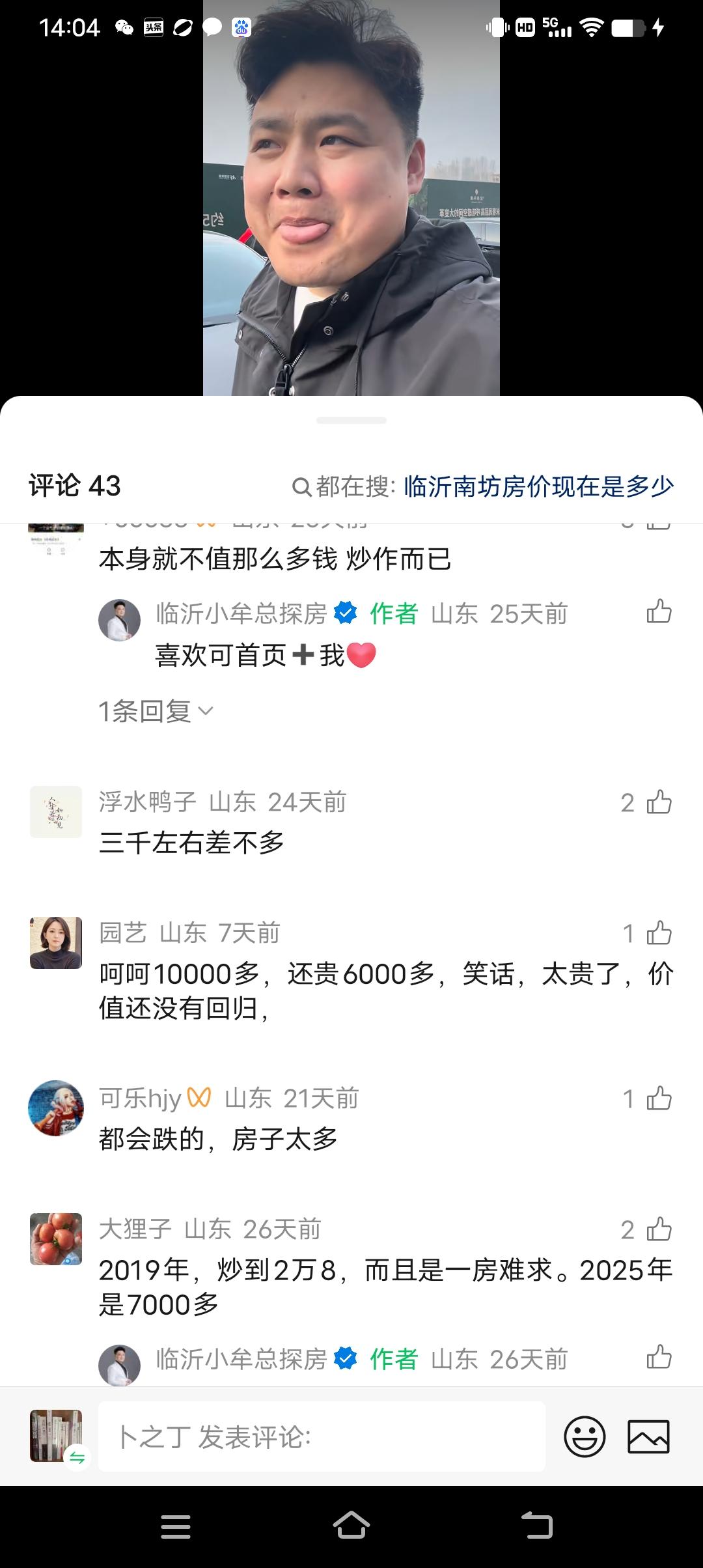 下午没事了,刷会视频,有个网红小哥说,以前临沂南坊学区房2.8w一平,现在1w左右,这应该是真事。那么,南坊的学区房现在可以抄底吗?从老卜的认知角度看,不太建议。原因三点,一是被疯狂炒作过的产品,一般会一地鸡毛。二是房龄越来越长,又多是高层。三是人口减少,学区房本来就是个笑话。以前被资本洗劫过的产品很多,黑茶、玉器、南红玛瑙、兰花、字画、石斛、藏獒、手串等,当然也包括房地产。欢迎大家留言文明交流!