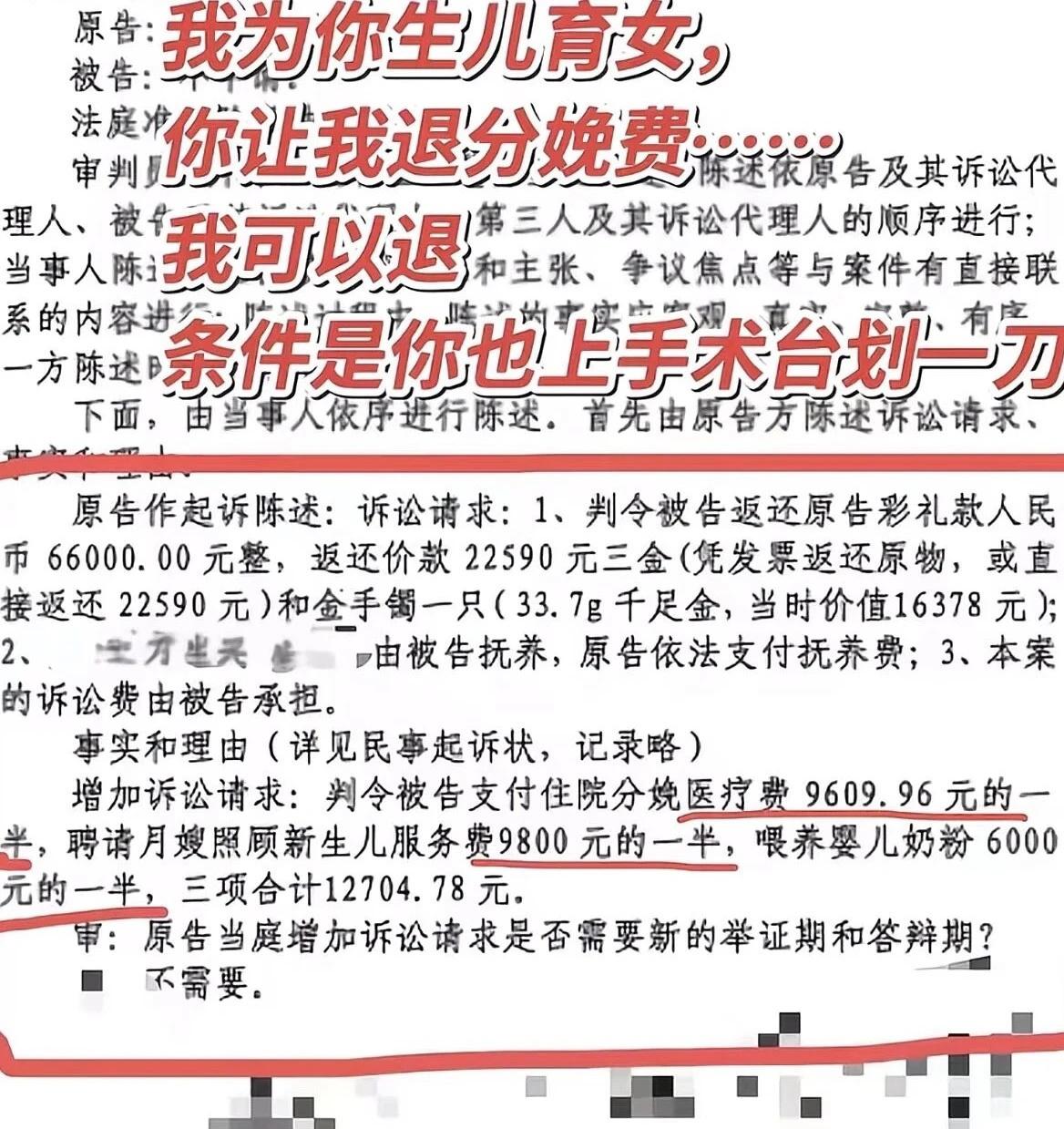 这不仅是要回那十万块的彩礼,连生孩子的住院费、孩子喝的奶粉钱,男方都要一笔一笔跟她算得清清楚楚。